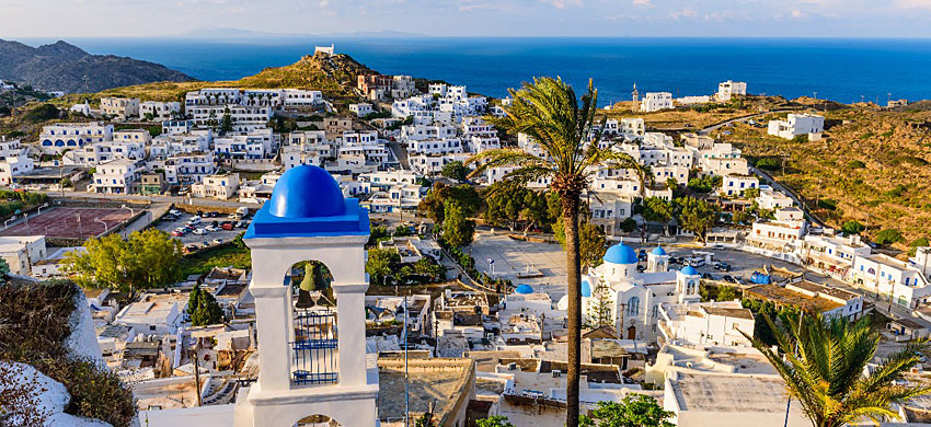 Overall, the city looks like a splendid amphitheater of white and sparkling houses, according to the canons of Cycladic architecture, with the typical buildings covered with a layer of white lime, cobalt blue doors and fixtures that recall the colors of the sky and the sea. Chora is surrounded by the typical wild vegetation of Ios and develops between two small rocky hills.