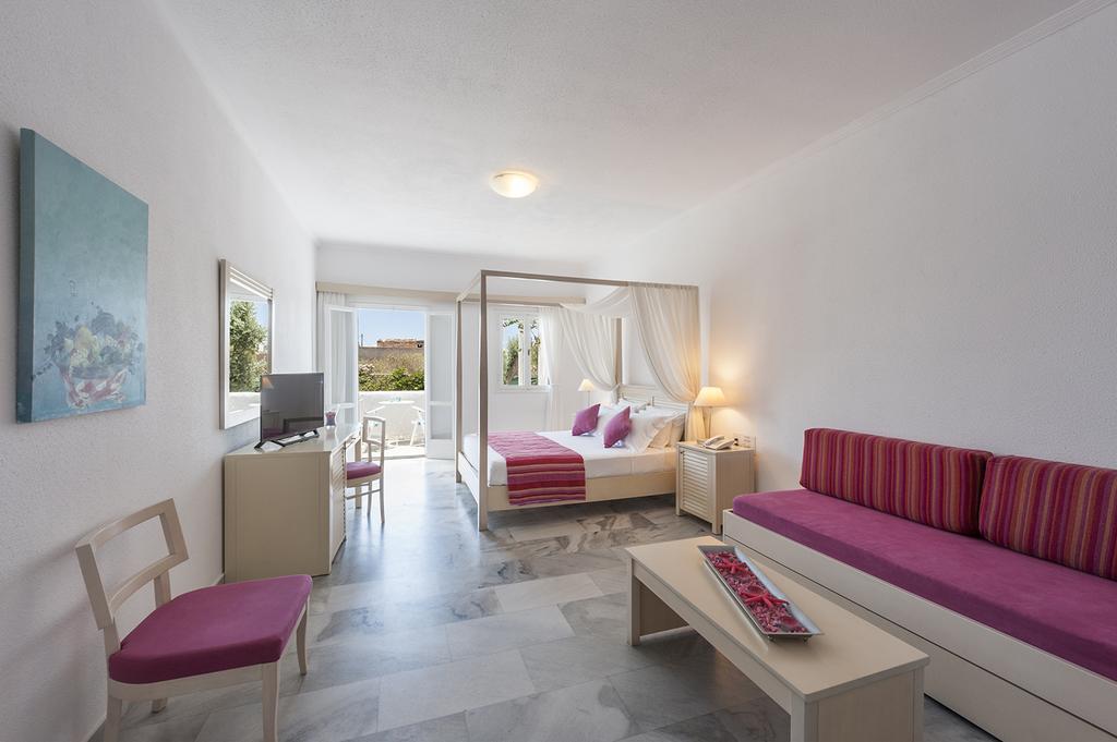 Presso il bar a bordo piscina potrete ordinare cocktail esotici, bevande e caffè, mentre il ristorante in loco vi servirà specialità greche preparate dallo chef dell'hotel. Ogni mattina vi sarà inoltre offerta una colazione a buffet.