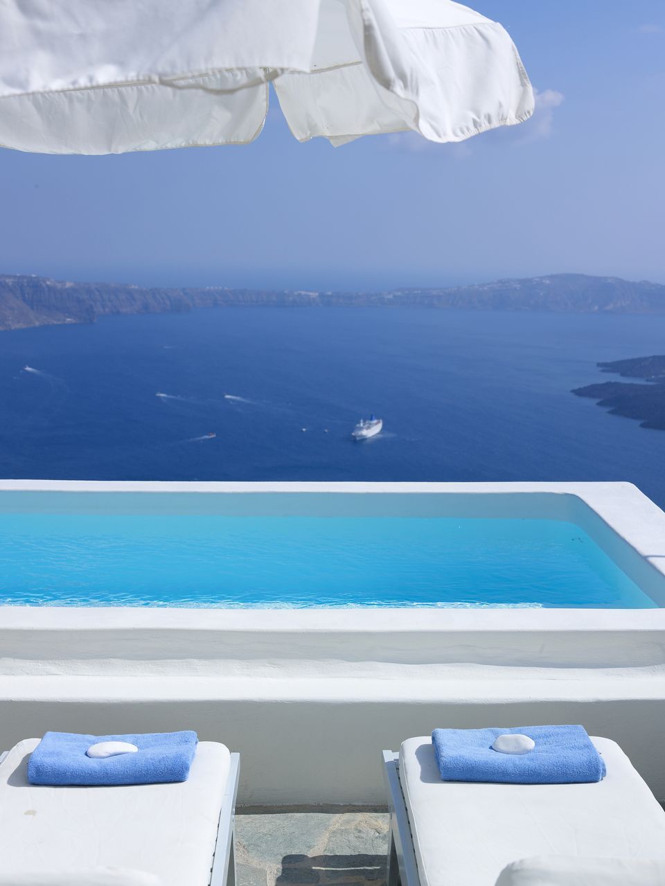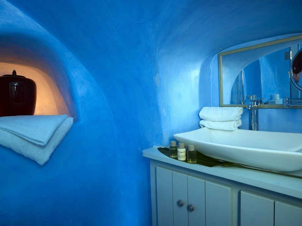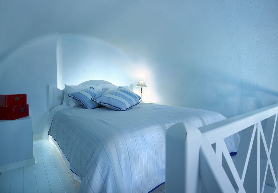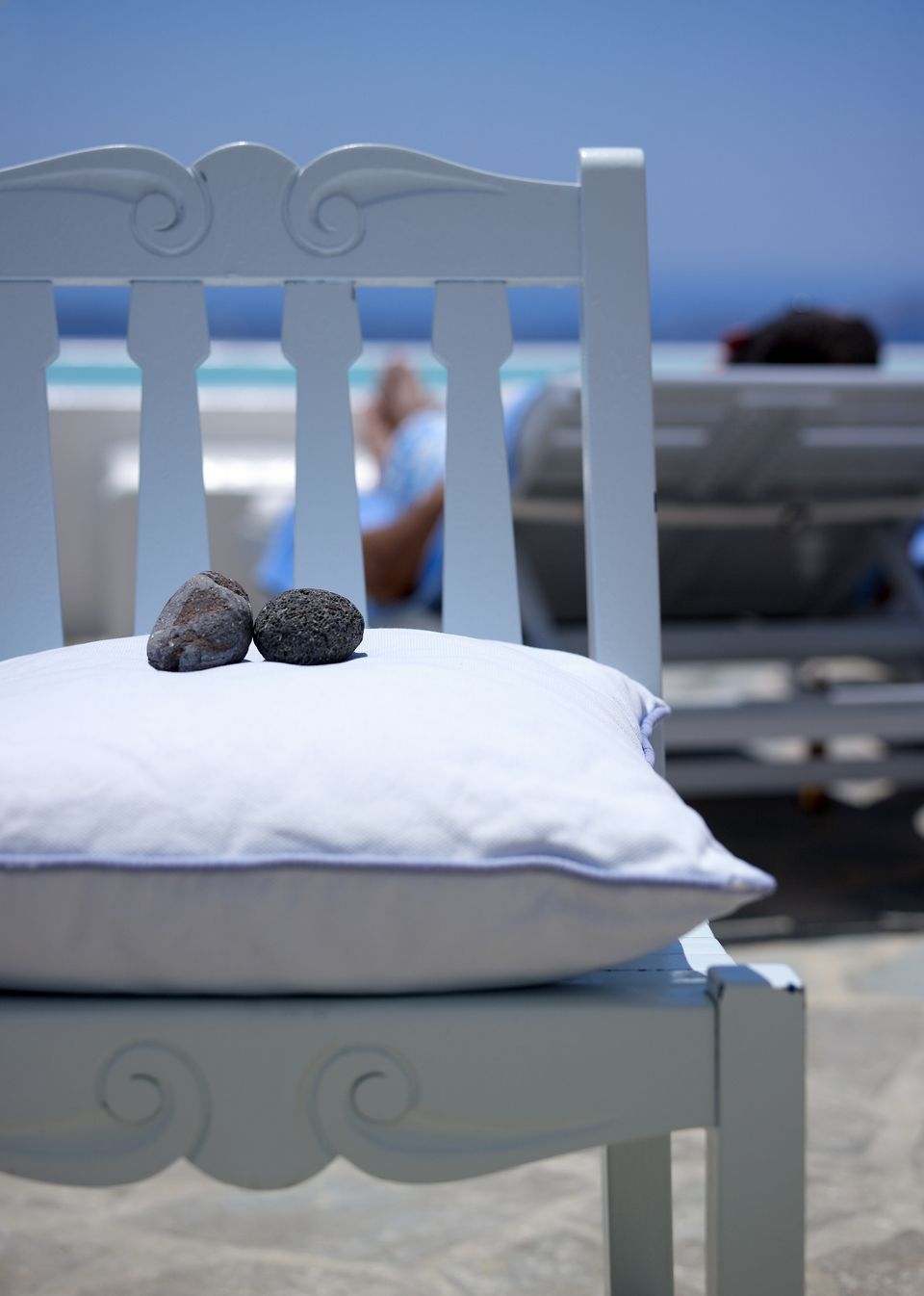 Realizzate in linea con lo stile tradizionale delle Cicladi, tutte le camere e le suite sono dotate di soffitti a cupola, aria condizionata, TV satellitare LCD, frigorifero e asciugacapelli. La maggior parte vanta una veranda privata con vista mozzafiato.