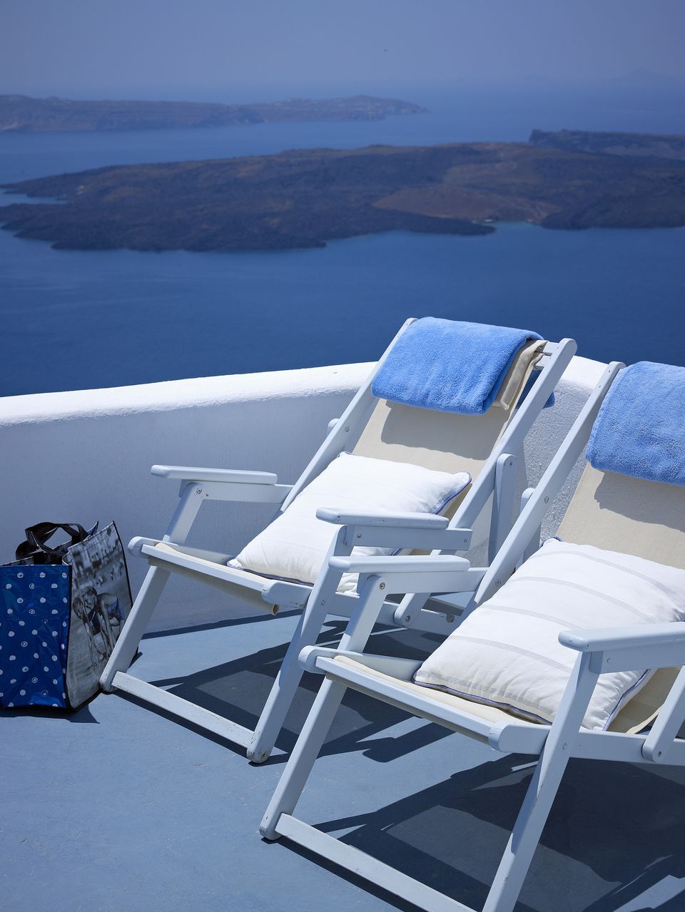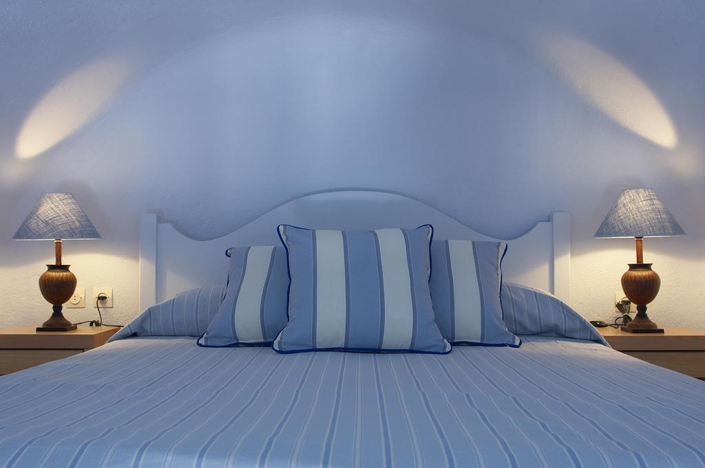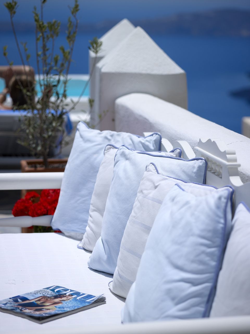 Realizzate in linea con lo stile tradizionale delle Cicladi, tutte le camere e le suite sono dotate di soffitti a cupola, aria condizionata, TV satellitare LCD, frigorifero e asciugacapelli. La maggior parte vanta una veranda privata con vista mozzafiato.