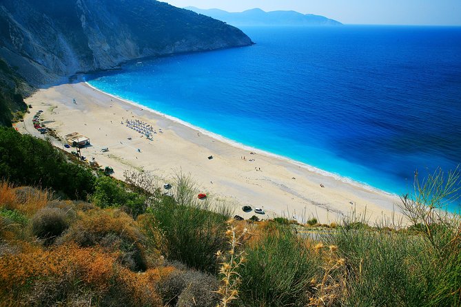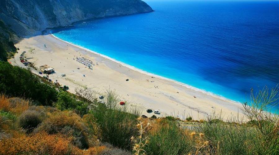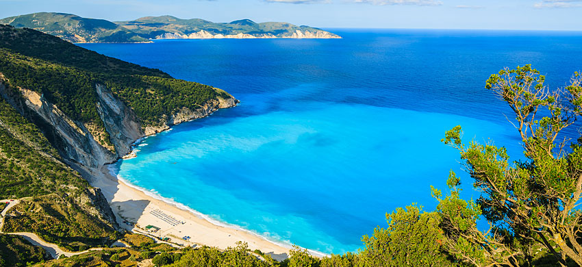 La bellissima spiaggia di Myrtos si trova a nel nord-ovest dell'isola di Cefalonia, incastonata tra le alte scogliere di due montagne, Agia Dynati e Kalon Oros. È una delle spiagge più scenografiche della Grecia, con il suo arco lungo un chilometro e mezzo di ciottoli bianchi scintillanti e le sue acque turchesi. Non a caso la spiaggia di Myrtos è stata scelta come location per un episodio del celebre film con Nicolas Cage e Penelope Cruz “Il Mandolino del Capitano Corelli”.Si tratta di un'ampia spiaggia di ciottoli rotondi bianchissimi, bagnata da un mare di una trasparenza incredibile, che ricorda le spiagge caraibiche. È considerata infatti una delle spiagge più belle di Cefalonia e rientra nella classifica delle 30 spiagge più belle del mondo. Infatti attira ogni anno migliaia di visitatori sull'isola di Cefalonia.