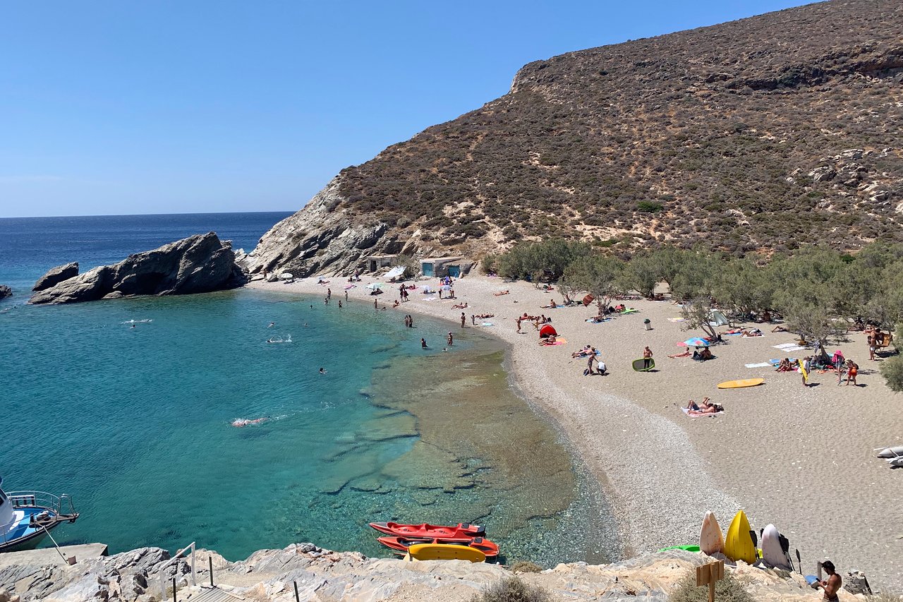 Per raggiungere la spiaggia di Agios Nikolaos ci sono due modi: a piedi o col taxi boat. Nel primo caso dovrete partire da Ano Meria e percorrere un sentiero non ombreggiato e ricco di pietre sparse qua e là, perciò vi suggeriamo di utilizzare scarpe comode e di attraversarlo nelle prime ore del mattino. Dopo circa 40 minuti il bellissimo scenario della baia si paleserà di fronte ai vostri occhi, e lì capirete che tutti quegli sforzi non sono stati vani, anzi, la vostra fatica verrà egregiamente ripagata!