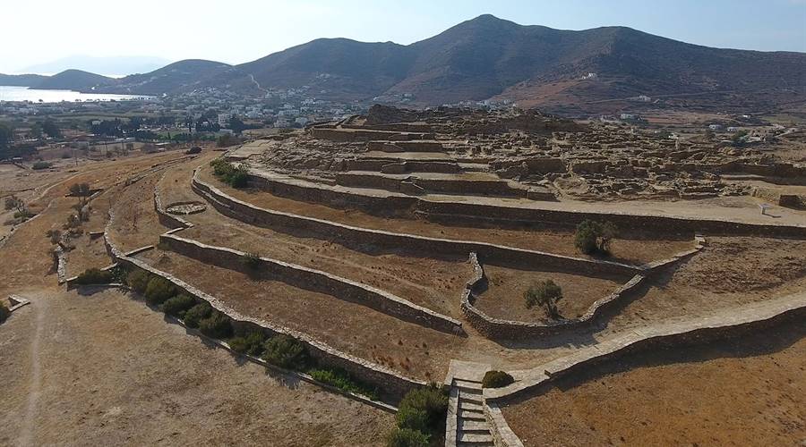 Appollaiato sulla sommità di una bassa collinetta sullo sfondo di una pianura pittoresca pochi passi fuori da Hóra, il capoluogo dell'isola di Ios, questo insediamento risalente all’Età del Bronzo conserva alcune terrazze restaurate e le rovine delle fondamenta di diversi edifici in stile cicladico, che potrete divertirvi a esplorare.
