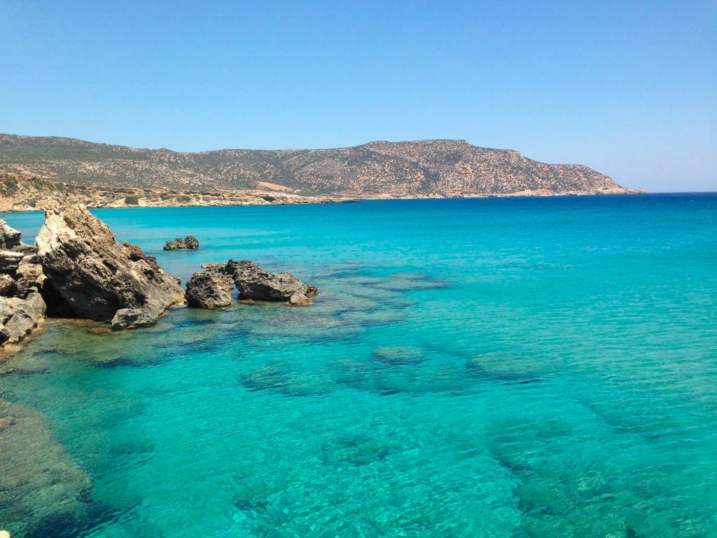Amoopi una piccola perla tra sabbia fine e mare da incanto! Da Pigadia, capoluogo dell’isola, si raggiunge con l'auto in poco meno di 15 minuti (sono 7 km circa), percorrendo la strada costiera in direzione sud, verso l’aeroporto. Raggiungere questa spiaggia è molto semplice e piacevole, perchè la strada che si va a percorrere è tutta panoramica, compresa la discesa verso la spiaggia.