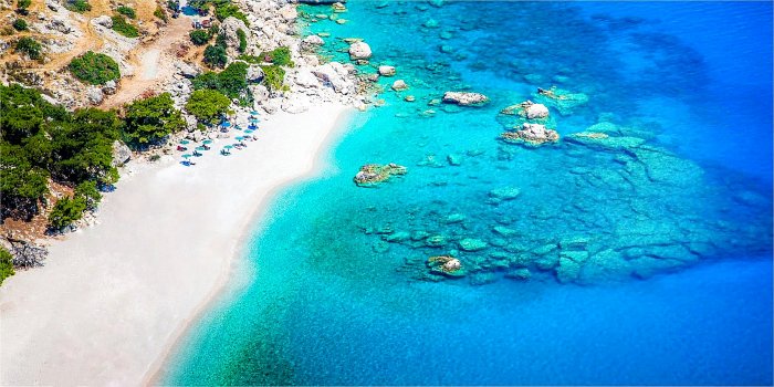 Una volta arrivati qui rimarrete stupefatti! La spiaggia mostra un mare calmo e limpido, dalle mille sfumature: dal verde smeraldo al celeste e infine all'azzurro! Inoltre anche se la spiaggia è molto conosciuta e frequentata è così estesa (oltre 300 m) da essere sempre abbastanza vivibile. Solo quando arrivano le barche delle escursioni giornaliere dal porto di Pigadia l'atmosfera diventa un po' caotica. La vostra prima espressione sarà un immenso: WOW! E già perchè qui l'atmosfera è strepitosa, le rocce ai bordi della spiaggia sono molto suggestive, l'acqua è tra le più cristalline che possiate aver ammirato e la spiaggia è enorme!Se siete adoratori dello snorkeling siete nel luogo perfetto. Qui i pesci sono tanti e multicolore!