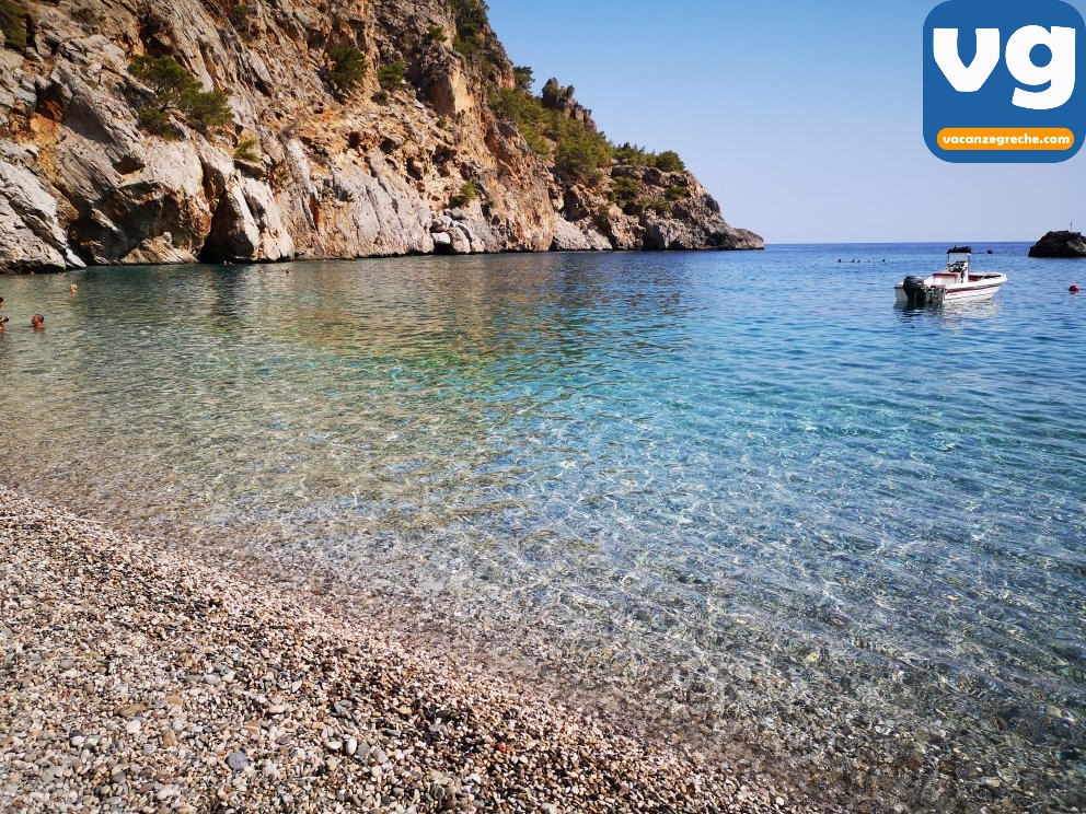 Incastonata tra due alte e maestose rocce, la spiaggia di Achata ha davanti a sè un mare da incanto , con tutti gli strepitosi colori a cui Karpathos ci ha abituati.