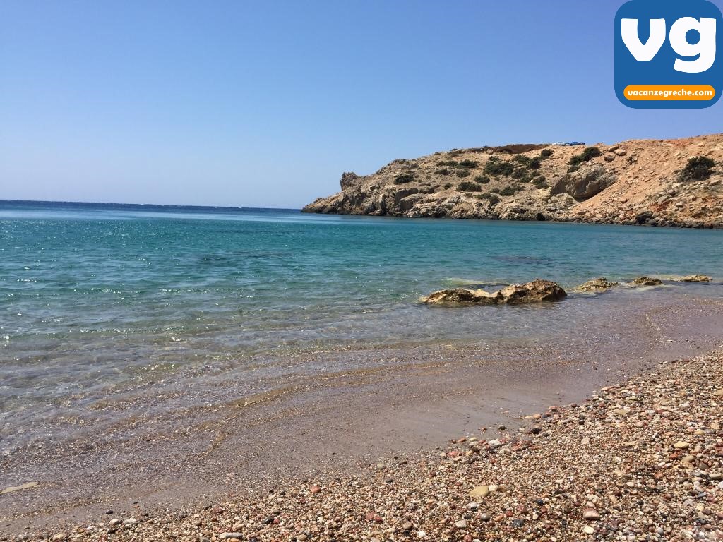 II mare col suo colore verde smeraldo, la rende una delle spiagge di Karpathos più fotografate: un piccolo gioiello incastonato tra le sue pareti rocciose.
