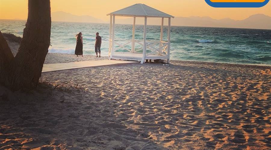 Marmari beach is characterized by its dunes of fine white and golden sand and a crystal clear sea. To make a note about the sea as on more windy days could reach the shore of algae despite the sea continues to maintain its fabulous blue color.