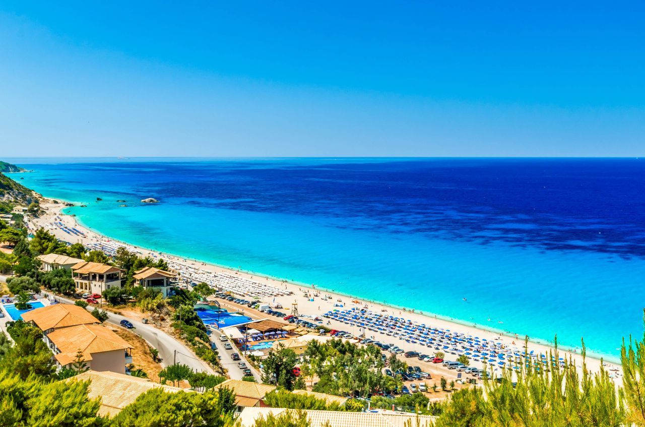 The wide beach of Kathisma is characterized by its white flat pebbles and a crystal clear sea with the classic blue color that characterizes all the beaches of the island of Lefkada.