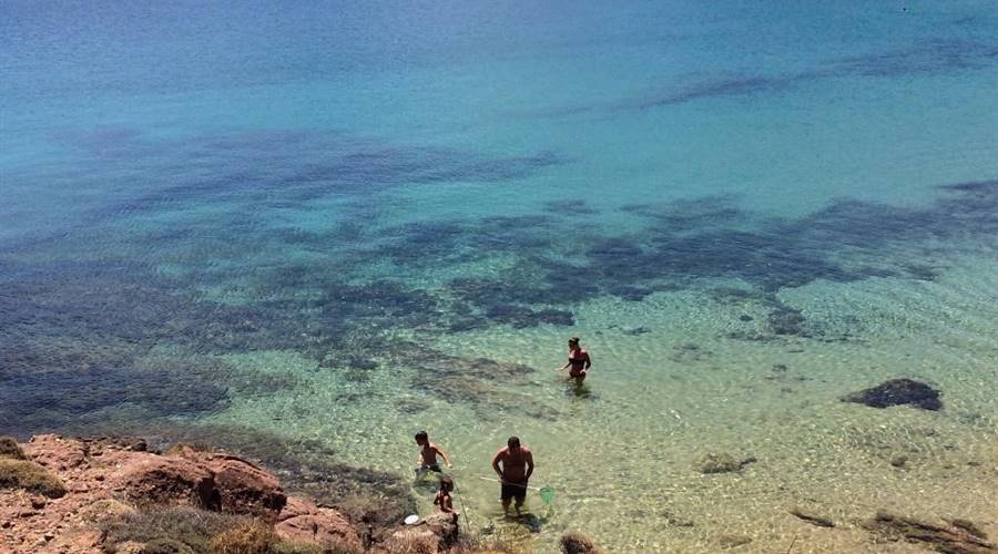 Alle sue spalle si trova una piazzetta, con la sua piccola e deliziosa chiesa e un'enorme tamerice dove potrete riposare e godervi lo stupendo panorama. Subito a destra troverete l'unica graziosa taverna, dove poter assaporare gustosi piatti a base di pesce.
