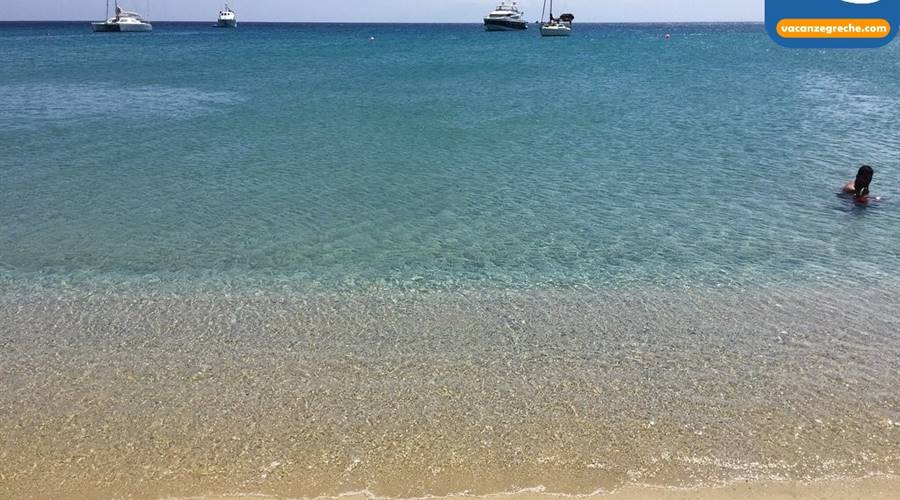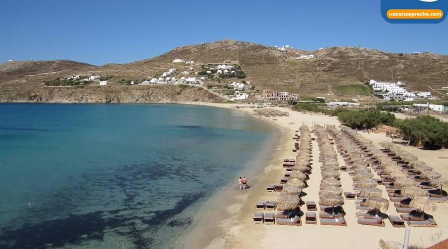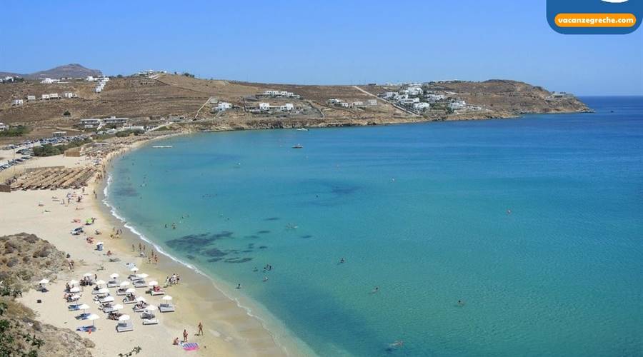 This beach is, according to many, one of the most beautiful on Mykonos. It can be reached either by private transport (there is ample free parking) or by public bus.