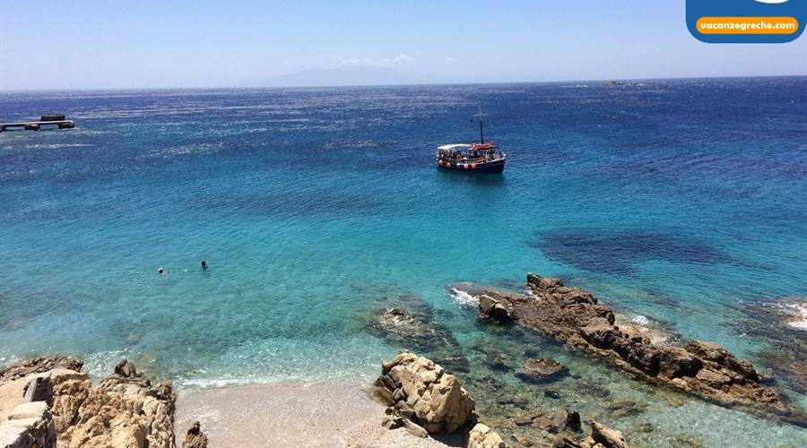 On this beautiful bay there are three fully equipped beaches, the Solymar, the Lohan and the Nemo Beach. In the first one the cost for an umbrella and 2 sunbeds is 50 € (including towels). The other two are a bit cheaper, here the cost is € 30. There is also a part of free beach, always with soft golden sand.