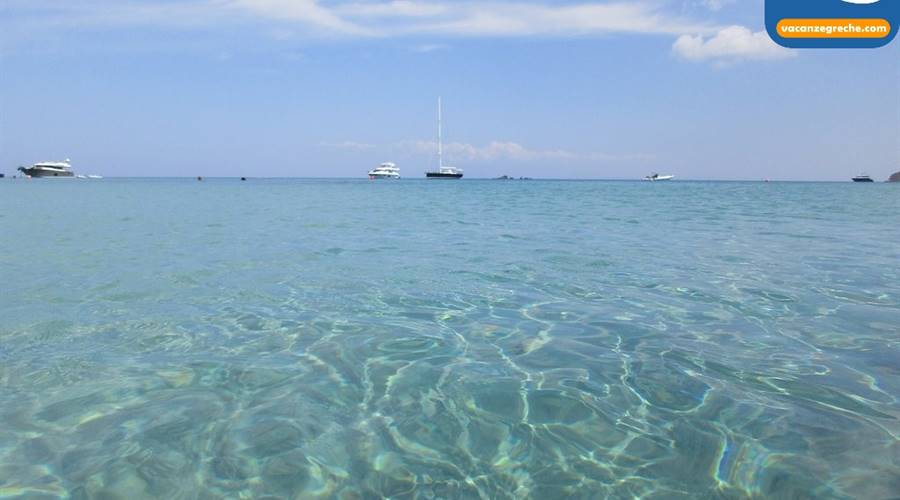 At the beaches you can listen to music, sip a cocktail and enjoy one of the typical dishes of Greek and international cuisine. Often the Meltemi blows, a wind typical of the Cyclades, which will refresh your hot Greek days!