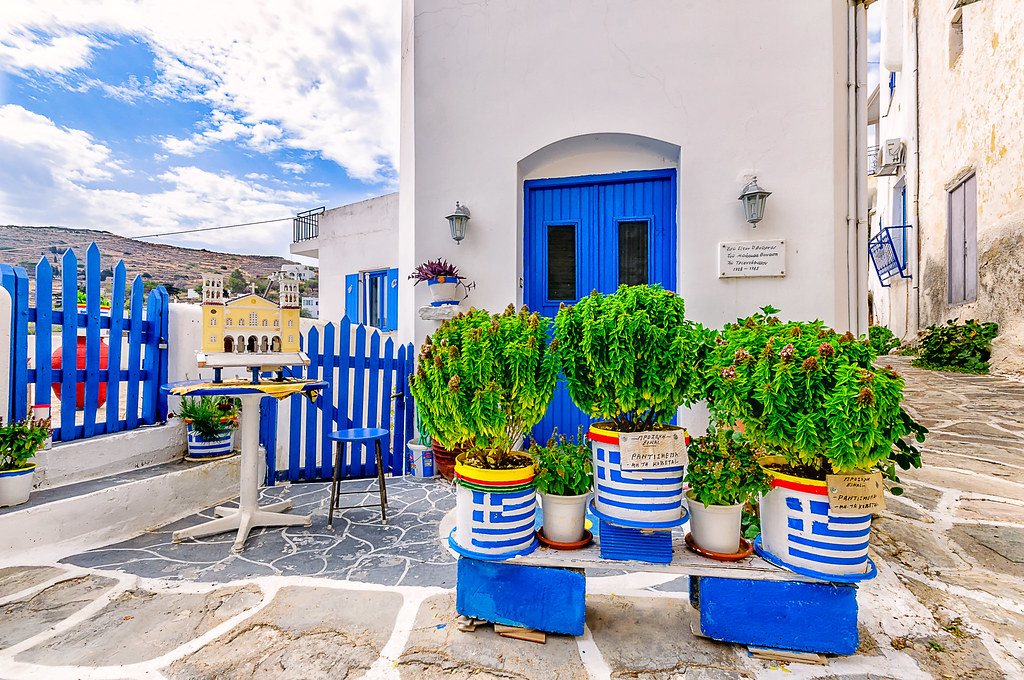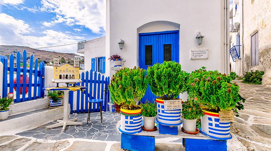 Lefkes is a traditional Cycladic village perched on the hill, with white houses, blue doors and windows overflowing with colorful flowers .. in short, a postcard landscape! What we always recommend in these cases is to get lost in the narrow streets of the village of Lefkes and discover this delightful village without haste, savoring every glimpse and photographing every panorama.