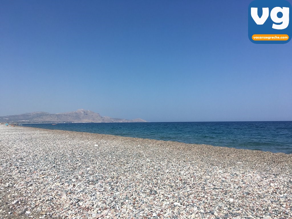 La spiaggia è molto ampia e si estende per ben 4 km dal paesino omonimo. La spiaggia di Kalathos è perfetta per chi cerca il relax più totale anche al 15 di agosto: ampi spazi, tre piccole aree attrezzate e per il resto spiaggia libera, qualche bar e ristorante e il solo armonioso suono del mare.