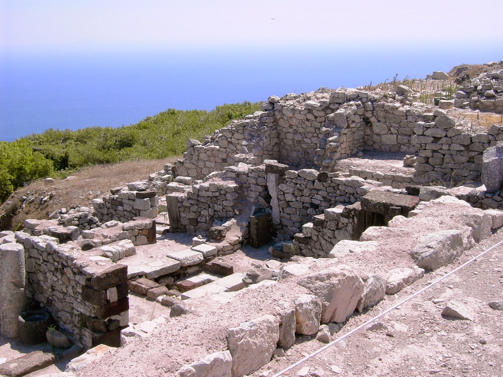 Quando arriverete in cima, antichi resti si distendono su 150 metri di larghezza e 800 di lunghezza, creando uno scenario di impareggiabile bellezza. Ammirerete la Terrazza delle Feste, dove un tempo si festeggiavano sagre in onore di Apollo. Adorerete l'Agorà, il cuore amministrativo e commerciale dell' Antica Thera dove troviamo un portico, monumenti e santuari in onore di alcune autorità. Apprezzerete i templi in onore delle due divinità più venerate dalla popolazione di Thera: il primo, il Tempio ellenico di Dionisio, del III° secolo a.C, costruito a nord dell'Agorà in pietra locale con facciata e tetto in marmo. Il secondo, il santuario di Apollo Karneios, del VI° secolo a.C, che comprende un tempio, un cortile con colonne monolitiche e una cisterna sotterranea. Il tutto si divide in strada principale e strade secondarie.