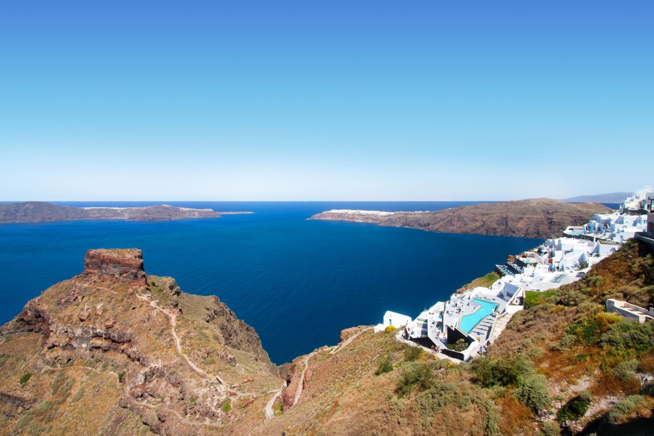 Infine vi consigliamo di avventurarvi lungo i sentieri che corrono sopra la scogliera di Firostefani e lasciatevi rapire dal suggestivo panorama, che dopo il tramonto vi regalerà emozioni indescrivibili.A Firostefani il romanticismo che si respira è di casa. E' il luogo ideale per una proposta di matrimonio o per festeggiare un anniversario...o semplicemente per guardarsi profondamente negli occhi..la luce e i colori che si sprigionano, faranno il resto..beh...siete a Santorini..l'isola più romantica della Grecia!