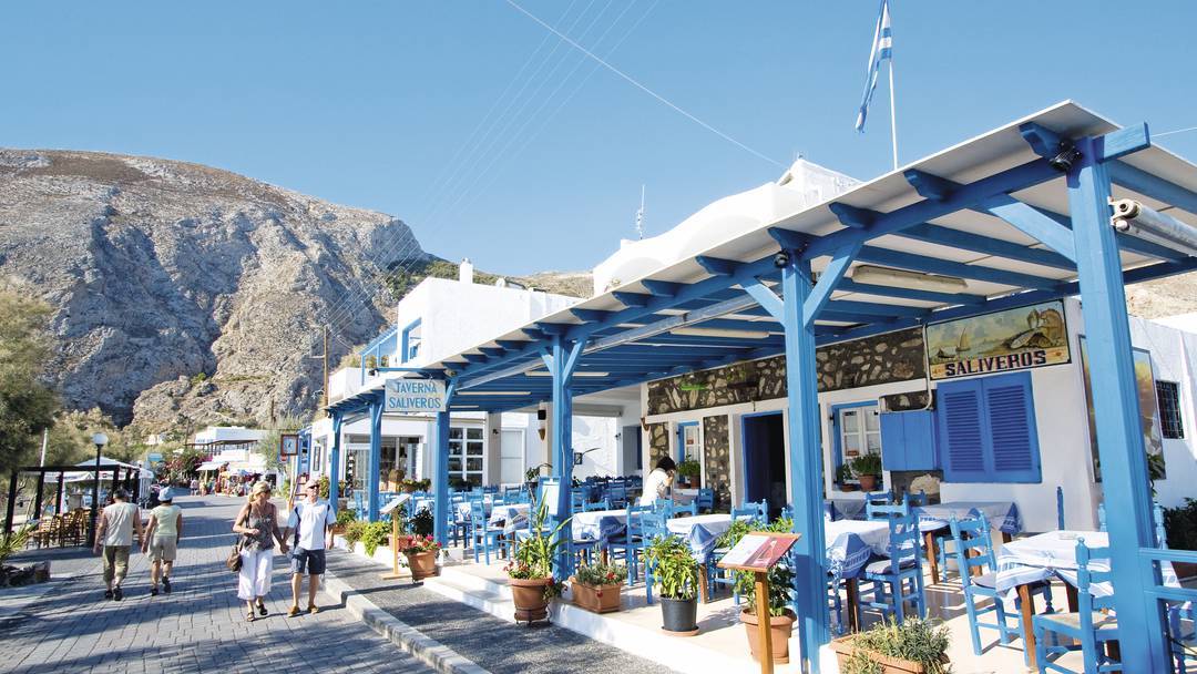 La spiaggia di Kamari è situata lungo la costa sudorientale dell'isola di Santorini, a circa 10 chilometri a sud-est di Fira (il capoluogo) . La spiaggia di Kamari è tra le più frequentate dell'isola di Santorini, ed è una delle mete marittime più vivaci oltre ad essere la spiaggia più estesa di Santorini. Una volta giunti rimarrete affascinati dal suo colore nero, con pietruzze di origine vulcanica e dal mare limpido e calmo...detto ciò meglio portarsi delle infradito per raggiungere il bagnasciuga ...in certe ore della giornata camminate potrebbe risultare piuttosto difficoltoso per via del calore che si sprigiona dalla spiaggia. Al vostro arrivo la prima cosa che noterete sarà la grossa roccia "Mesa Vouno" che spunta dal mare e divide in due la lunga distesa di sabbia. Subito dopo questo grosso masso trovate la spiaggia di Perissa e dopo ancora la nostra amata Kamari.Se siete adoradori di trekking e lunghe camminate potete salire su Mesa Vouno a piedi intraprendendo il sentiero segnalato. Oppure se l'idea di arrivare in cima vi aggrada ma non siete molto esperti di scarpinate potete salire con auto, motorino o con un simpatico asinello. Sulla sommità dell'alto promontorio potete visitare il meraviglioso sito di scavo dell'Antica Thera . Questa grande città ormai non più abitata, è oggi ricca di rovine seminate in 150 metri di larghezza e 800 metri di lunghezza. Qui si può apprezzare soprattutto la Terrazza delle Feste, luogo in cui un tempo, in onore di Apollo, si festeggiava e si cantava allegramente. Fondata nel IX secolo a. C., l’Antica Therafu abitata dai Dori e poi occupata in età ellenistica, romana e bizantina. Sono giunti fino ai giorni nostri edifici del IV° secolo a.C. Il sito archeologico si sviluppa lungo una strada principale che conduce a due Agorà dove si possono ammirare innumerevoli resti di templi greci; tra cui il Tempio di Dioniso e il Santuario di Apollo Karneios. Le tracce comprendono anche le Terme Romane, le mura bizantine, il Santuario di Artemidoro, scavato nella roccia viva, e la chiesetta in pietra di Agios Stefanos. E’ inoltre disponibile una guida a pagamento che vi aiuterà a comprendere meglio il linguaggio dei resti. Ma raccomandiamo di prenotare, perché altrimenti potreste rischiare di non trovare posto. Oltre al sito, ovviamente, da qui si gode di una vista spettacolare su tutta la baia, non dimenticate la fotocamera!