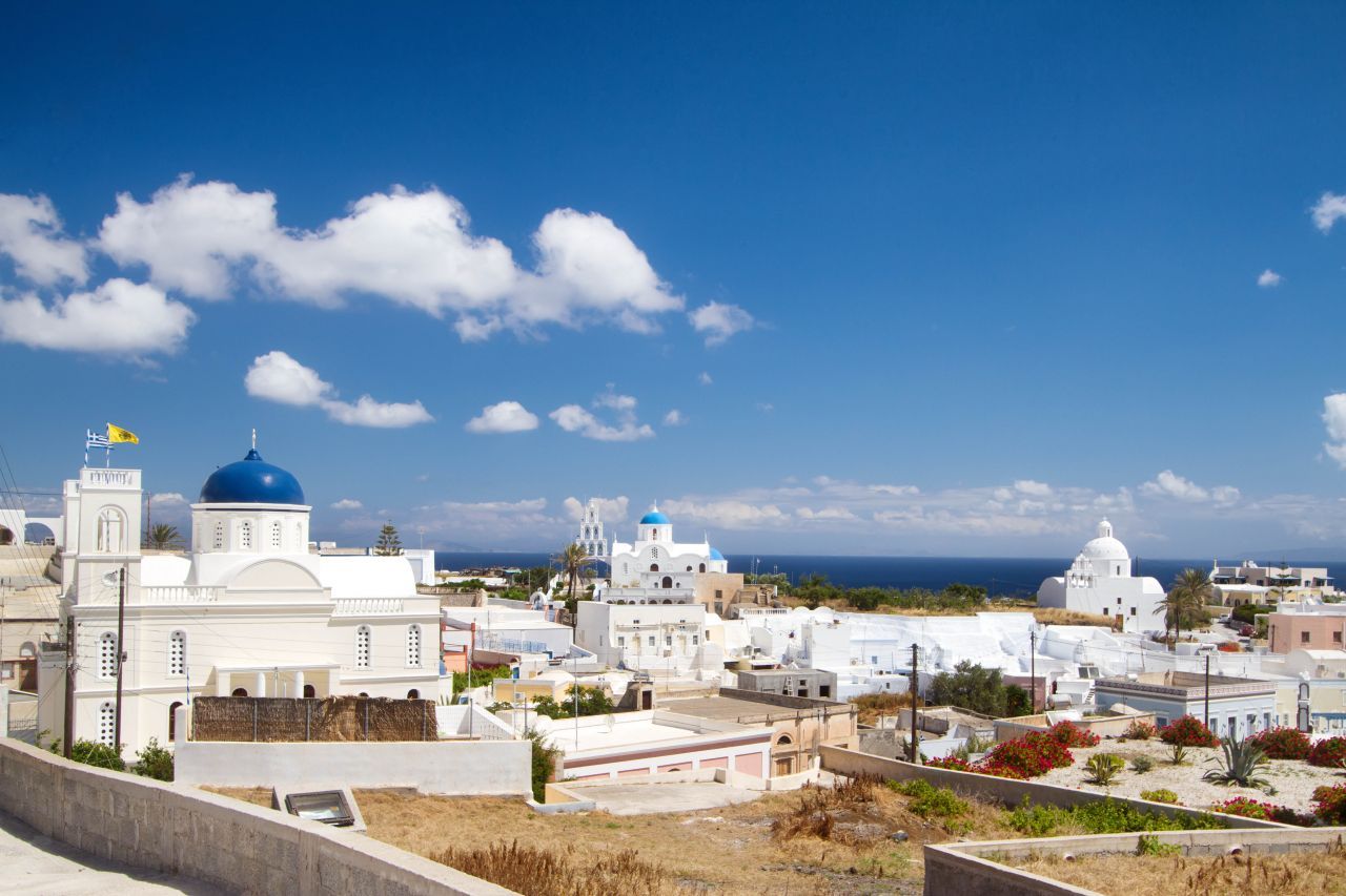 Karterados è un'ottima alternativa a Fira, per chi desidera una vacanza più economica in una località più rilassante, appartata e lontana dal turismo di massa. Gli hotel sono più economici e accessibili e per chi ricerca una soluzione più esclusiva si può optare per un ampia scelta di ville con piscina.Karterados offre inoltre diverse strutture turistiche come centri sportivi, ristoranti, caffetterie, un supermercato e una panetteria tradizionale che è famosa per i suoi deliziosi biscotti.. e quindi mettete in conto una decina di minuti per deliziare queste prelibatezzeFira (il capoluogo dell'isola di Santorini) è facilmente raggiungibile da Karterados anche a piedi, con una piacevole passeggiata di circa 15 minuti, o in bus. Ma se preferite essere indipendenti e partire alla scoperta di Santorini, vi consigliamo di noleggiare un auto o uno scooter, sin dall'aeroporto, per muovervi in piena autonomia.A 4 km da Karterados troverete la spiaggia di Exo Gialos. Si tratta di una bella e tranquilla spiaggia di sabbia, mista a ciottoli vulcanici neri e acque blu cobalto. È protetta da imponenti scogliere plasmate dal vento, che si tuffano a picco sul mare creando un paesaggio insolito e straordinario.A Karterados non manca proprio niente, quindi non resta che farci un salto!