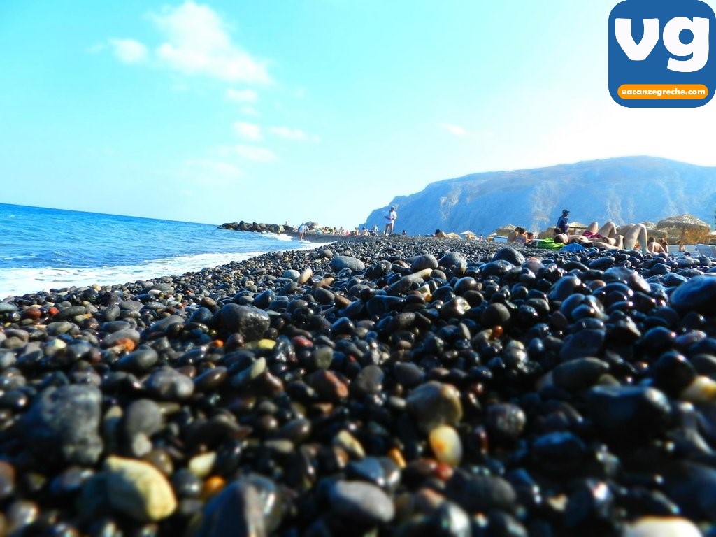 La spiaggia di Kamari è situata lungo la costa sudorientale di Santorini, a circa 10 chilometri a sud-est di Fira. È molto frequentata, conosciuta e vivace oltre ad essere la spiaggia più grande dell'isola. Una volta giunti rimarrete affascinati dal pietrisco nero di origine vulcanica e dal mare limpido e calmo. In merito al terreno consigliamo di portare spesso con voi le infradito perché i ciottolini diventano veramente bollenti quando c'è molto caldo. Noterete subito la grossa roccia Mesa Vouno che spunta dal mare e divide in due la lunga distesa di sabbia, subito dopo questo grosso masso si presenta la spiaggia di Perissa e dopo ancora la nostra amata Kamari. Se siete adoradori di trekking e lunghe camminate potete salire su Mesa Vouno a piedi intraprendendo il sentiero segnalato. Oppure se l'idea di arrivare in cima vi aggrada ma non siete molto esperti di scarpinate potete salire con auto, motorino o asino. Sulla sommità dell'alto promontorio potete visitare il sito di scavo Alt-Thera, un vecchio villaggio non più abitato dove si può ammirarne i resti. Oltre al sito, ovviamente, da qui si gode di una vista spettacolare su tutta la spiaggia, non dimenticate la fotocamera! Sulla spiaggia di Kamari è possibile praticare sport acquatici, in particolare le immersioni e lo snorkeling; ottimi da effettuare qui dato che alla baia è stata attribuita la Bandiera Blu. Infatti se vi immergete capirete subito quanto sia entusiasmante penetrare queste splendide acque, un vero e proprio tour d'avventura! Ma in realtà, grazie al vento che spesso soffia sulla baia, anche sport come il windsurf e il kitesurf sono molto popolari in questa zona. In alternativa potete esercitare anche il parapendio oppure noleggiare moto d'acqua. È attrezzata di bar, ristoranti, alberghi, luoghi d'intrattenimento e bancarelle che potrete trovare sul lungomare. Ovviamente non mancano i locali per noleggiare lettini ed ombrelloni, i quali vi verranno consegnati gratuitamente se acquistate anche solo un caffè in alcuni beach bar che lo permettono. Inoltre il personale di questi bar e locali è sempre molto gentile e disponibile. La strada che affianca la spiaggia è ricca di bar, ristoranti, negozi d'abbigliamento, minimarkets, ouzerie e gyros shops. Insomma potete darvi alla pazza gioia!Dalla spiaggia di Kamari si può partire per visitare l'Antica Fira, ma ricordatevi di prenotare perchè in estate le richieste sono parecchie e potreste non trovare posto. Questa spiaggia è sinonimo di comfort, qualsiasi cosa abbiate bisogno ce l'avete lì. Tra l'altro è anche raggiungibile in bus da Fira, oppure se decidete di utilizzare l'auto potete parcheggiare vicino alla spiaggia! Venite a scoprire questa spiaggia imperdibile!