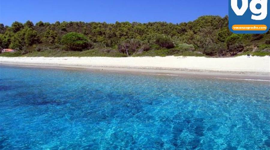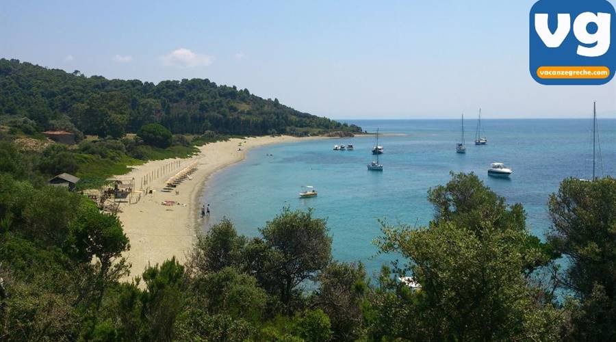 La spiaggia è dorata, con sabbia fine, circondata da ulivi e un mare limpidissimo che degrada dolcemente, quindi perfetta anche in famiglia con bambini piccoli. Alle spalle della spiaggia di Tsougrias c'è un immensa pineta dove potervi rilassare dopo un buon bagno o per un bel picnic immersi nella natura.