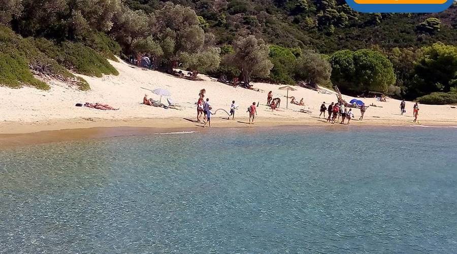 Se invece preferite una bella tavernetta tipica greca, dovrete solo attraversare una piccola collina con un sentiero (non impervio) fra alberi e radure e raggiungerete una seconda spiaggetta dove potervi rilassare per una pausa pranzo fronte mare, facendovi servire qualche tipico piatto greco con del buon pesce fresco.