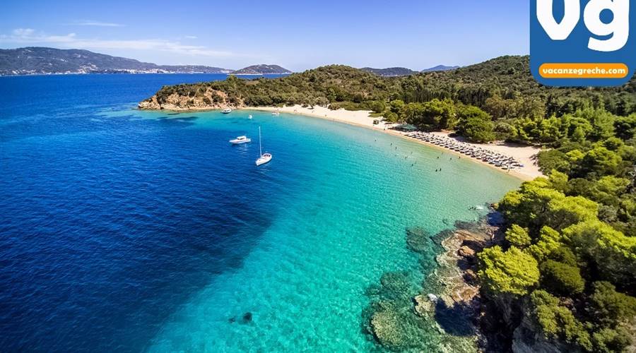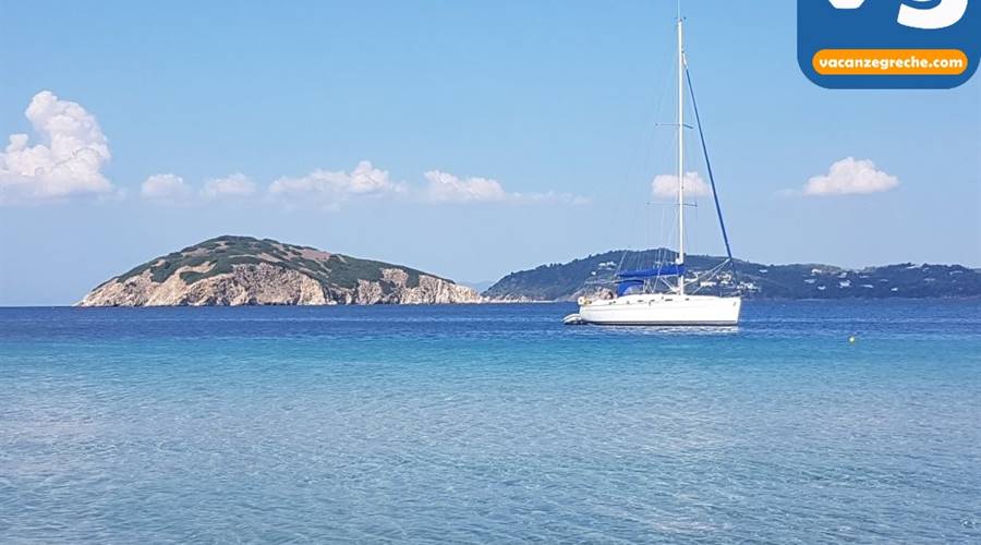 Ci troviamo in una delle 3 isole che si trovano proprio di fronte a Skiathos Town: le altre due isole sono Tsougriaki ed Arkos che a differenza di Tsougrias non hanno tour organizzati che vi possono accompagnare quindi vi servirà noleggiare delle barche private, se desiderate visitarle.