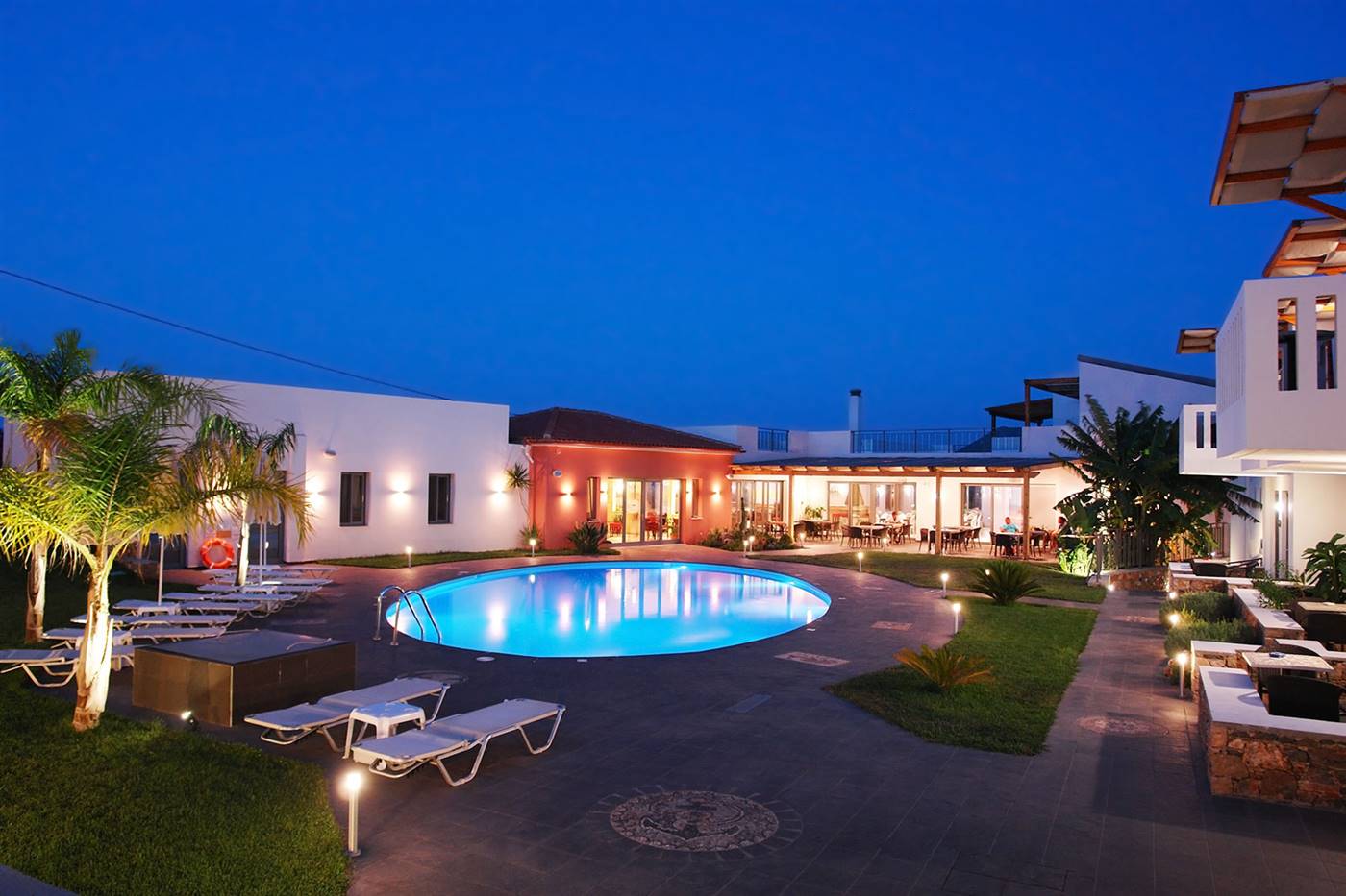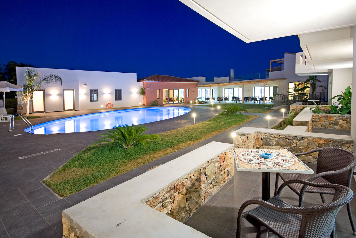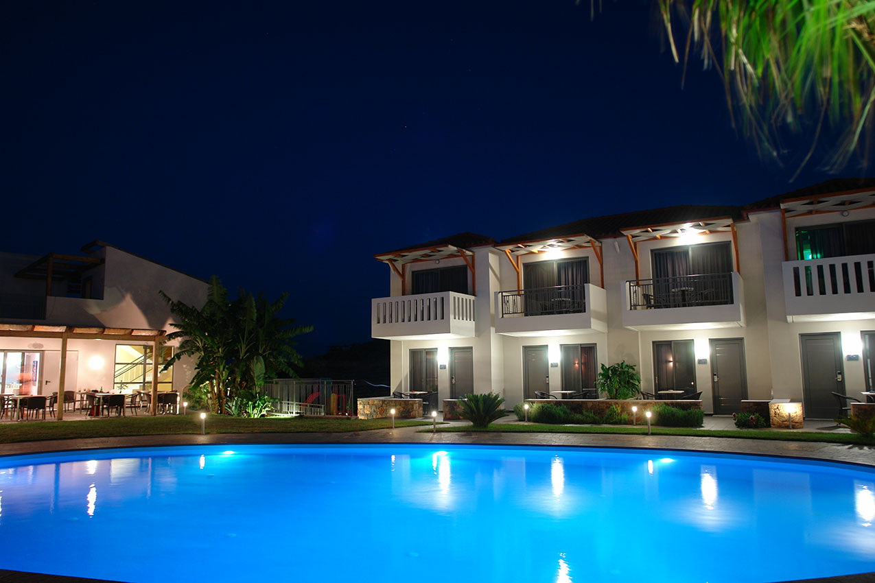 Si può godere di un cocktail accanto alla piscina, una varietà di vini e cocktail esotici oppure sul giardino pensile, con una vista unica della luna che emerge dall'isola Peristera. La colazione viene servita sulla terrazza del ristornate.