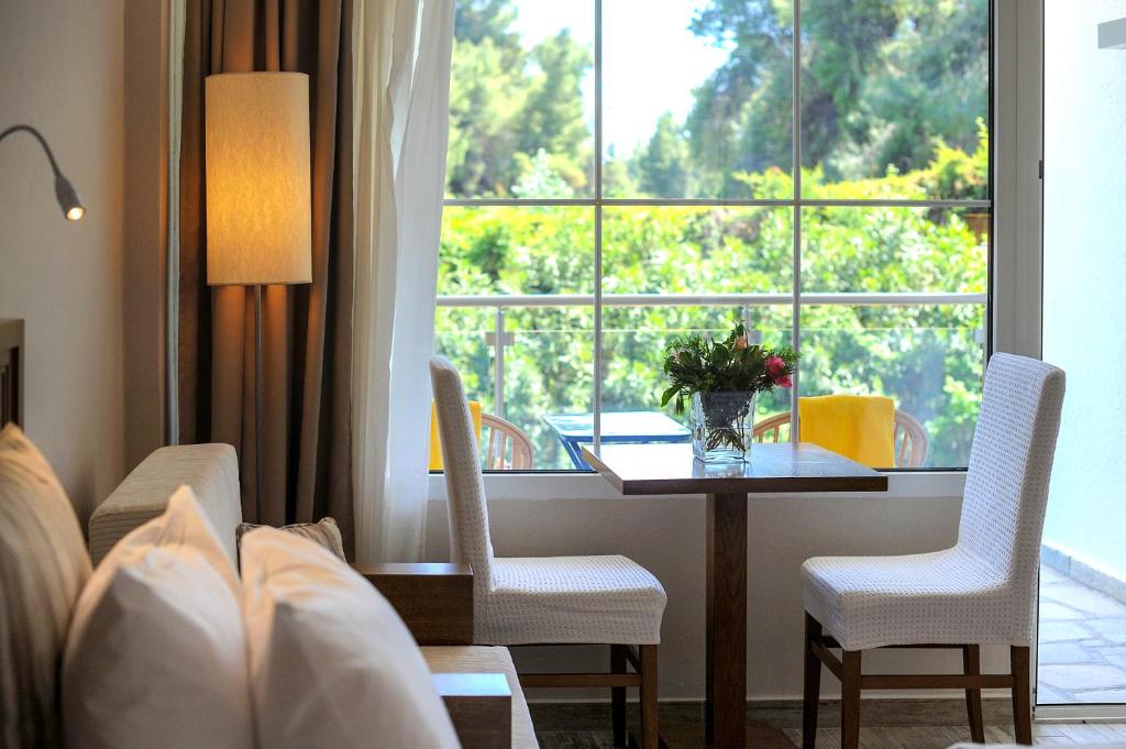 Le sistemazioni dell'Alexander the Great sono tutte climatizzate; vantano una TV satellitare, un minibar e un balcone arredato con vista sul mare o sul rigoglioso paesaggio circostante.