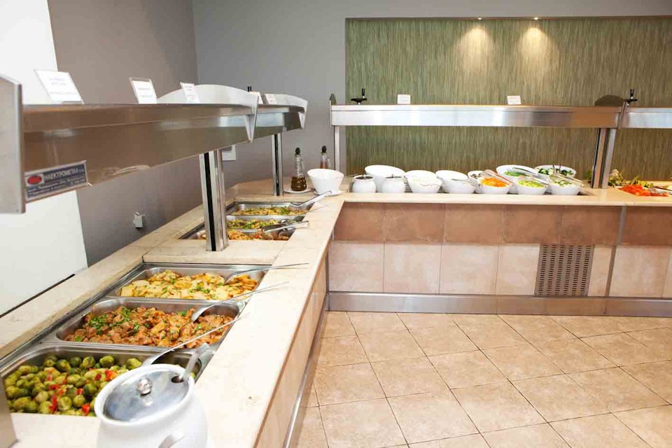 Il ristorante dell'hotel serve la colazione e una cena a buffet con piatti tradizionali greci e mediterranei a base di prodotti freschi locali. Presso la piscina e il bar della spiaggia vi attendono invece cocktail, bevande sane e spuntini. Tra i servizi figurano una piscina per bambini, un piccolo centro fitness e una spiaggia Bandiera Blu dove potrete affittare lettini e ombrelloni, sci d'acqua, moto d'acqua e biciclette d'acqua.
