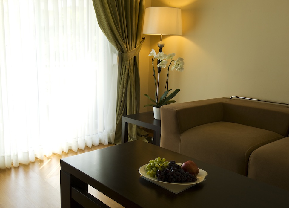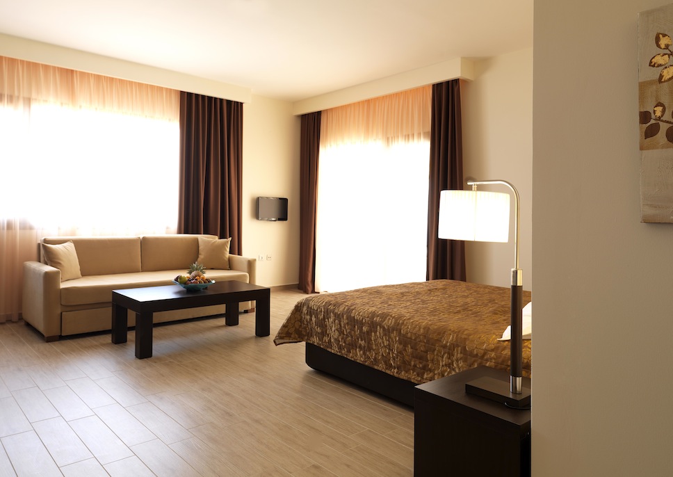 Tutte le sistemazioni regalano una vista panoramica sul mare. Le camere sono arredate con gusto, caratterizzate da una combinazione di design tradizionali e moderni. Le sistemazioni sono dotate di aria condizionata, riscaldamento, flat--panel, una TV e mini frigorifero. Alcune includono anche un sistema Hi-Fi.