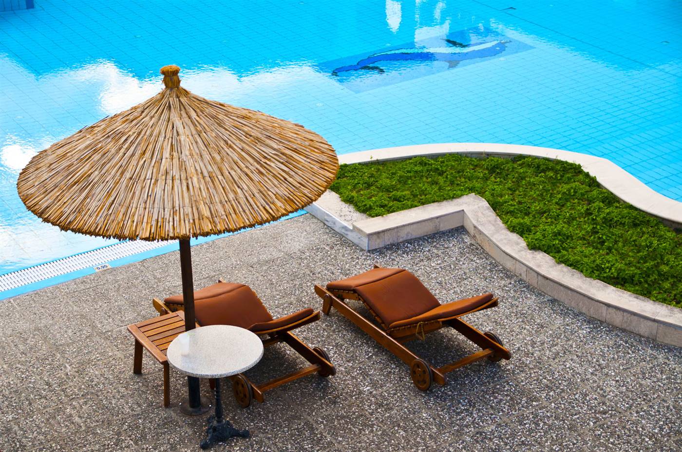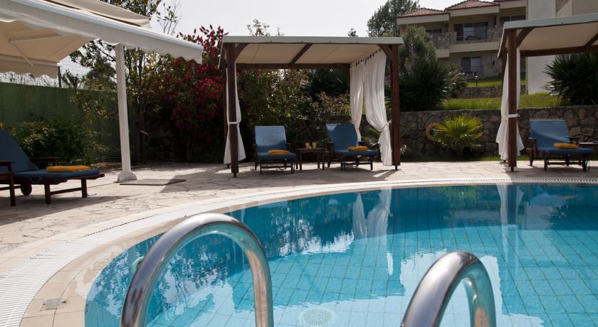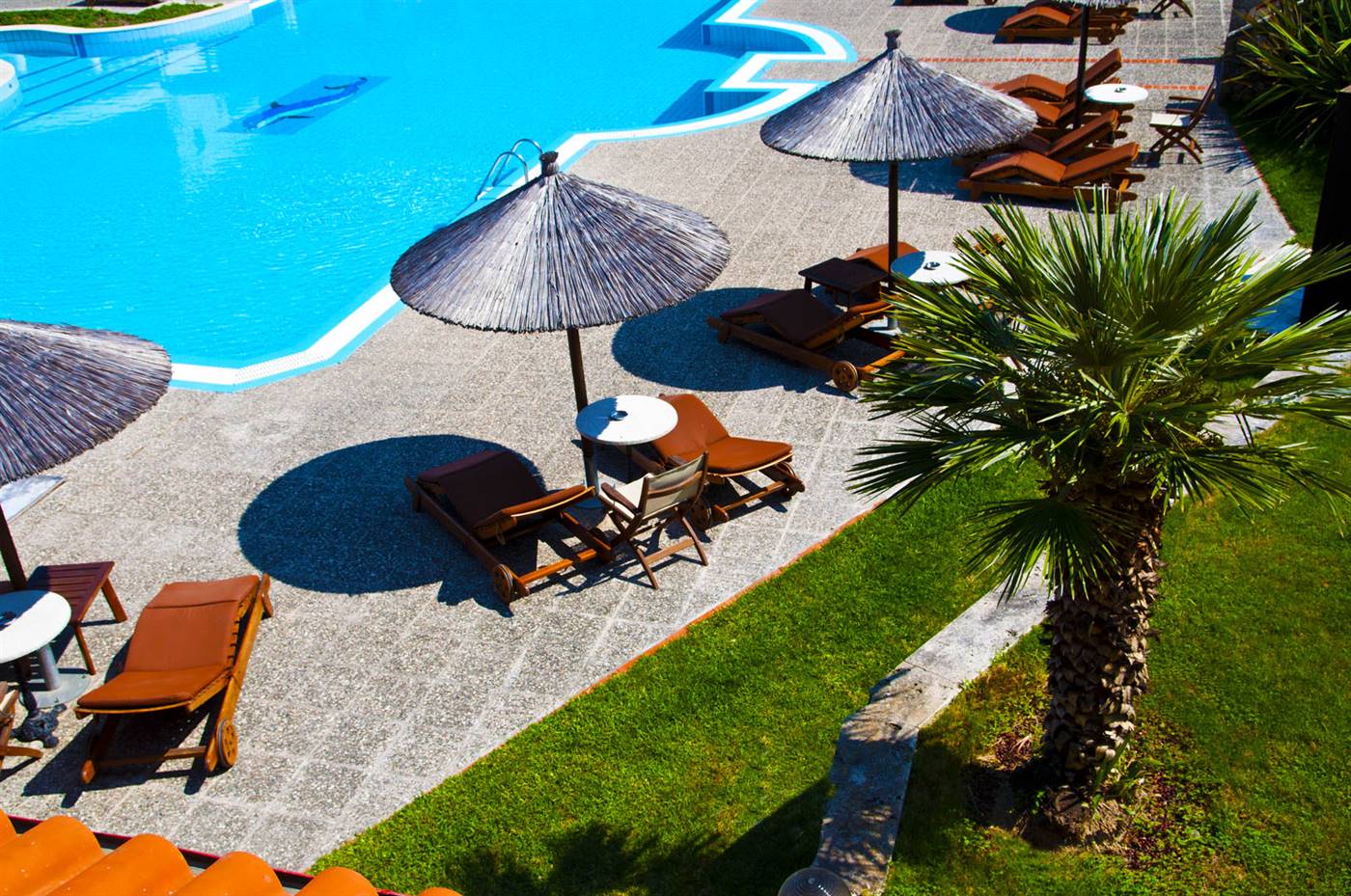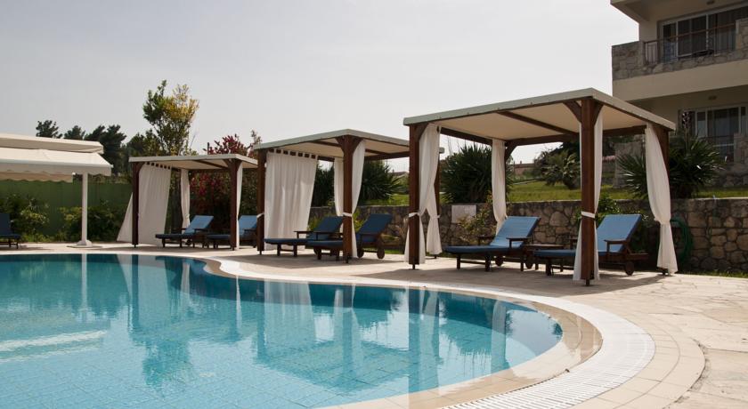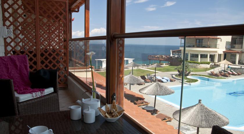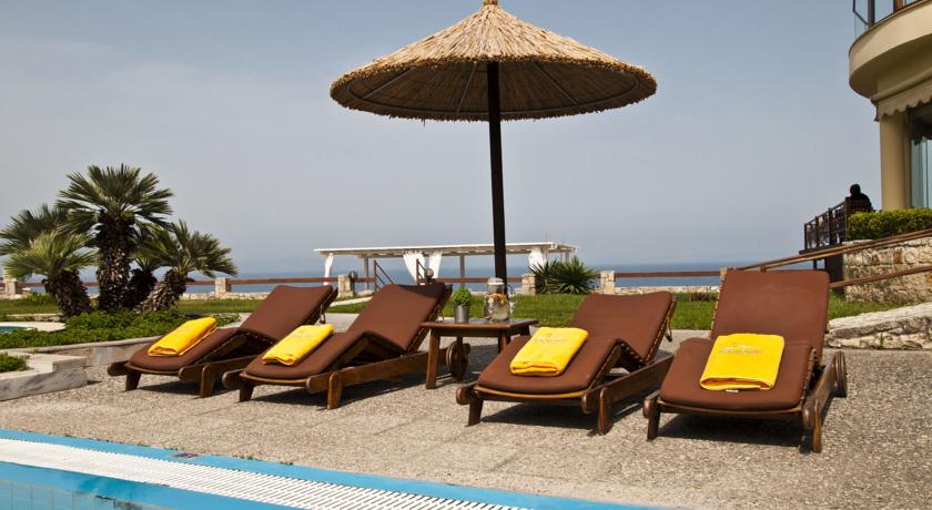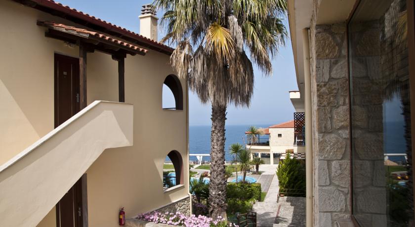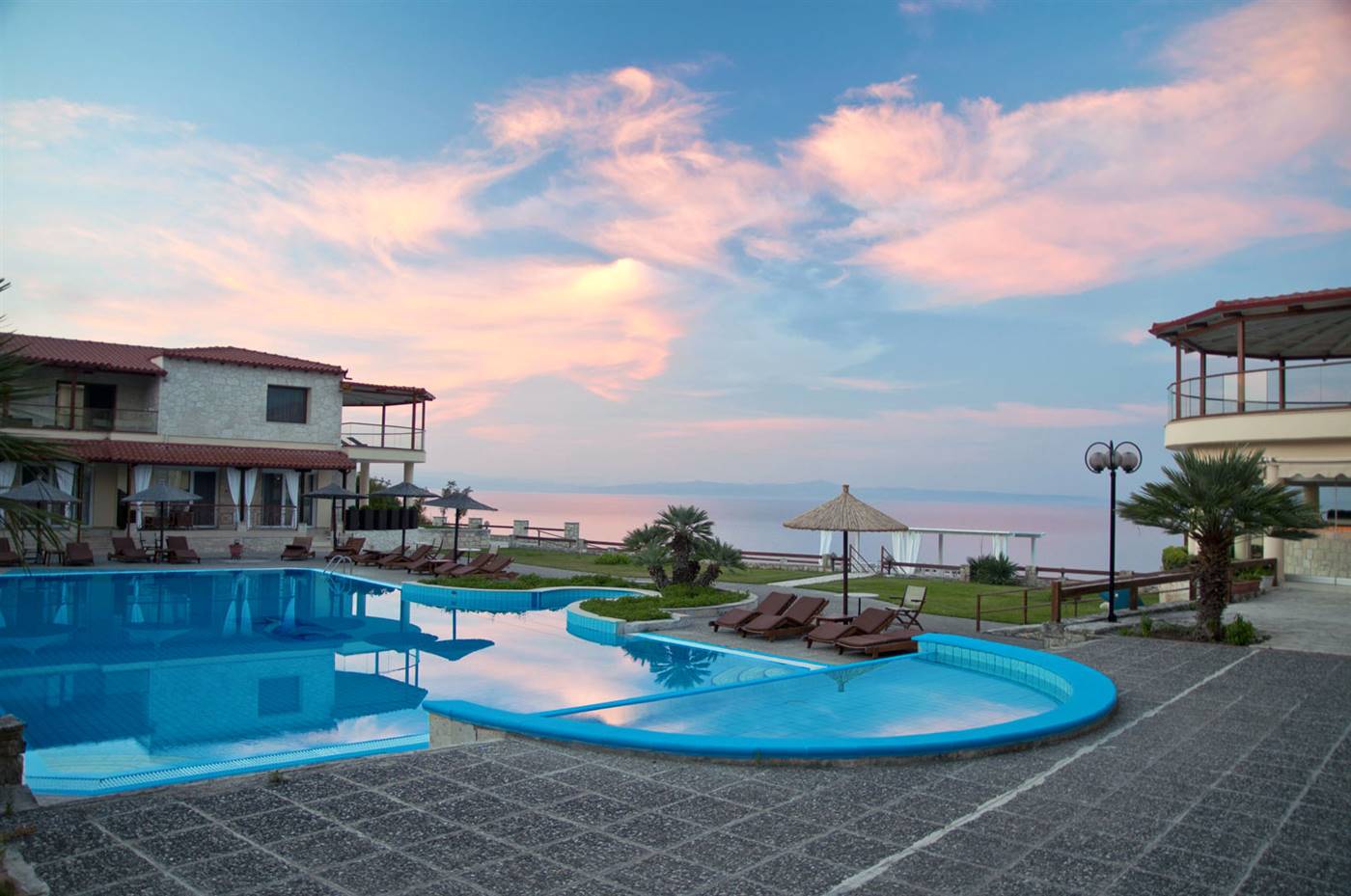 Situato su una scogliera, a 60 metri sopra la spiaggia, il Blue Bay Hotel offre 2 piscine di forma irregolare all'aperto con vista sul Golfo di Toroneos e una terrazza solarium con lettini e ombrelloni.