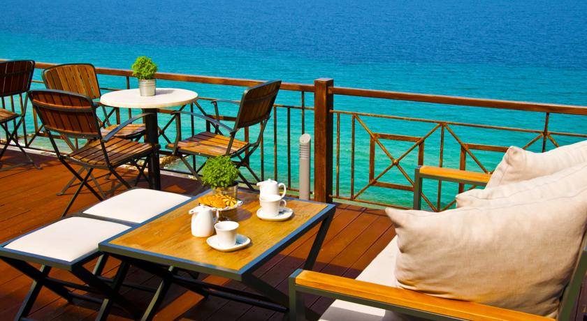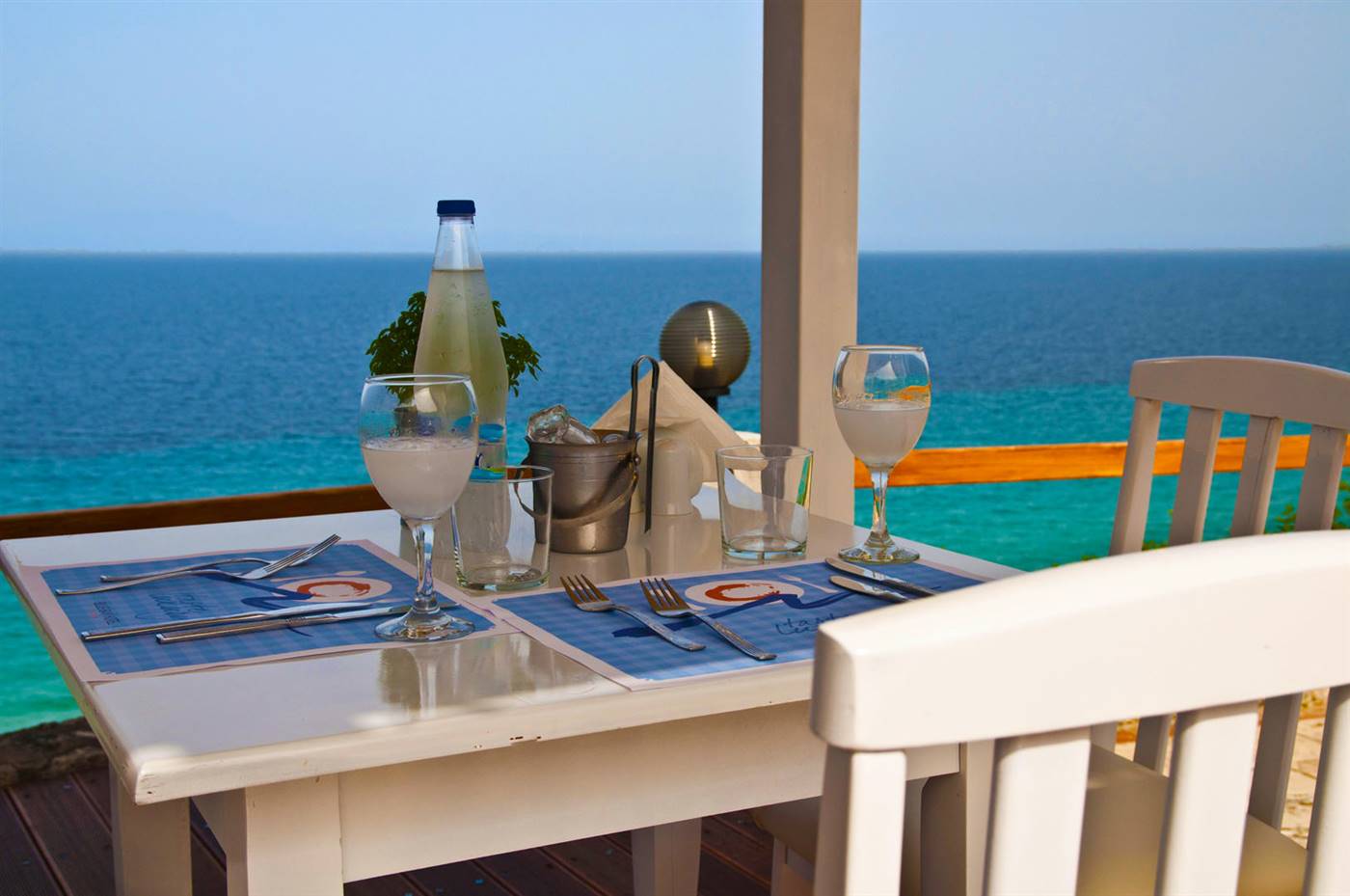 Situato ai margini della scogliera, il ristorante dell'hotel serve la colazione a buffet e la cena. Potrete gustare il pranzo à la carte con piatti della cucina greca e mediterranea, ed inoltre è possibile godere di cene romantiche private su richiesta.