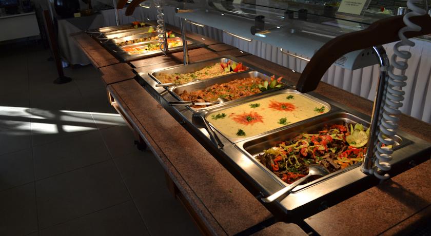 Il ristorante dell'hotel propone piatti della cucina mediterranea a buffet, mentre a pranzo all'aperto sulla terrazza. Il bar a bordo piscina serve bevande e snack tutto il giorno.
