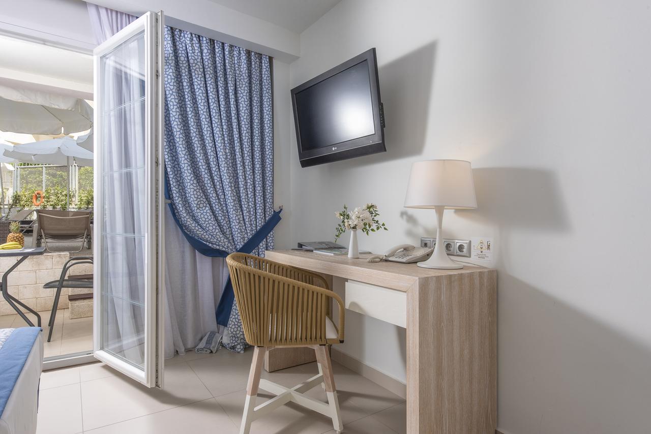 Le camere sono dotate di TV a schermo piatto, minibar e cassaforte. Apolamare tutte le camere sono dotate di balcone con splendida vista sul giardino. L'elegante El Greco ristorante serve colazione, pranzo e cena a buffet, mentre il Sunshine bar a bordo piscina serve bevande, cocktail e pasti leggeri.