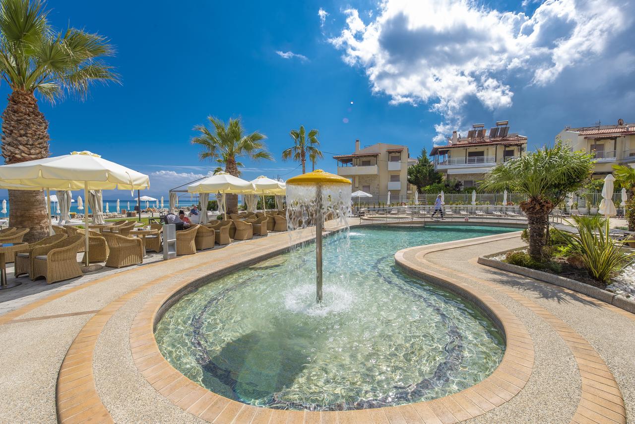 Il 5 stelle Elinotel Apolamare gode di una posizione privilegiata proprio sulla spiaggia di Chanioti e offre camere con arredi in stile barocco. Offre una piscina, una palestra completamente attrezzata.  Arredate con gusto e Elinotel le camere dispongono di aria condizionata, mobili in legno scuro, tende drappeggiate.