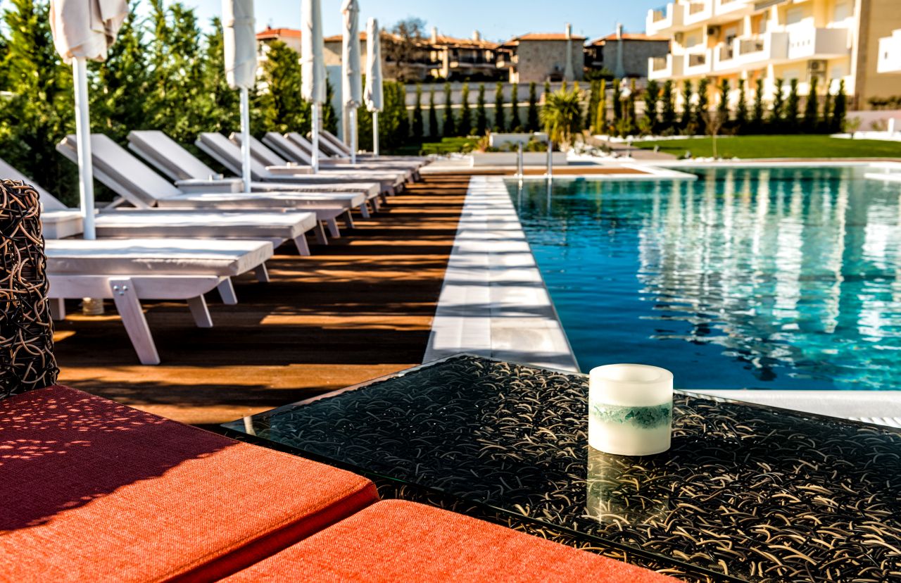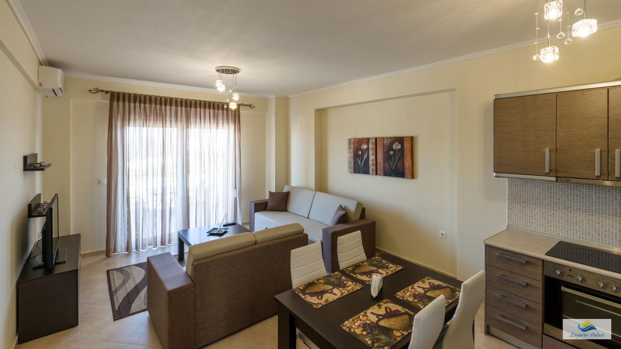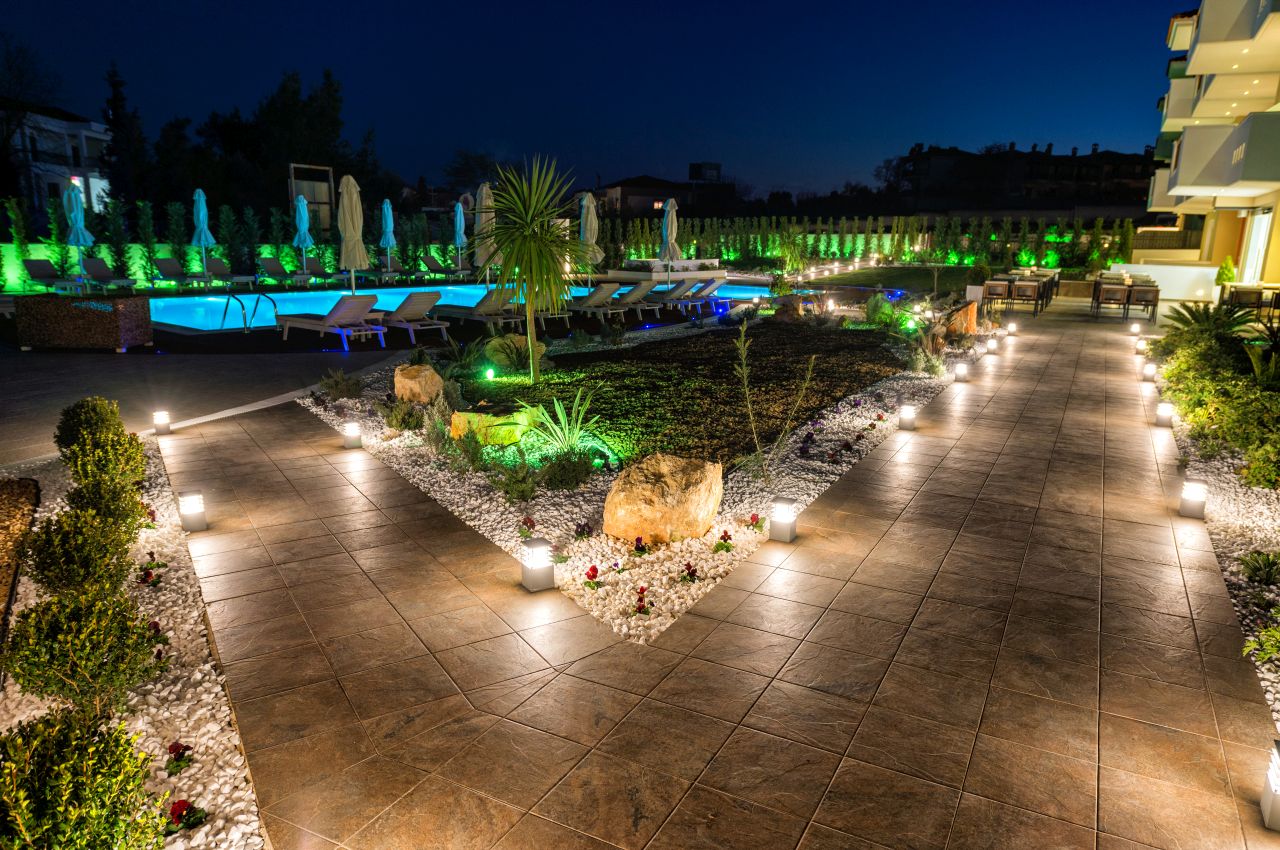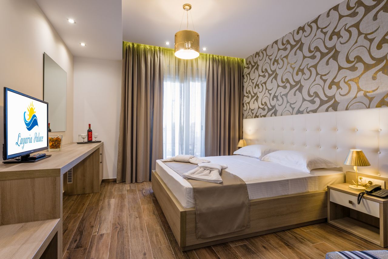 Situato ad Áfitos, il Lagaria Palace vanta un bar, un giardino, e sistemazioni climatizzate con balcone arredato. La struttura è dotata di connessione WiFi gratuita, parcheggio gratuito e una piscina all'aperto in comune