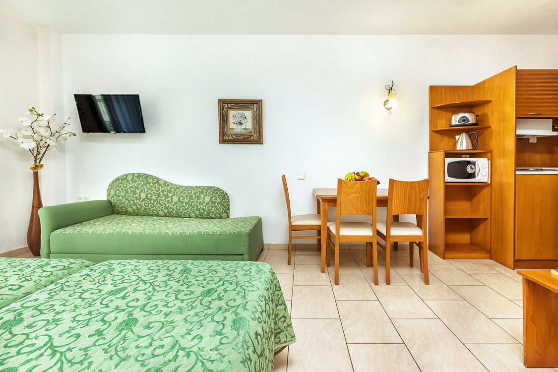 Spaziose e funzionali, le camere del Nereides Hotel includono un bagno, un angolo cottura, un balcone o terrazza con vista sulla piscina e sul giardino, una TV, un forno a microonde e un tostapane. Il bar a bordo piscina serve la colazione ogni mattina, e propone vari snack, cocktail e altre bevande durante tutta la giornata.