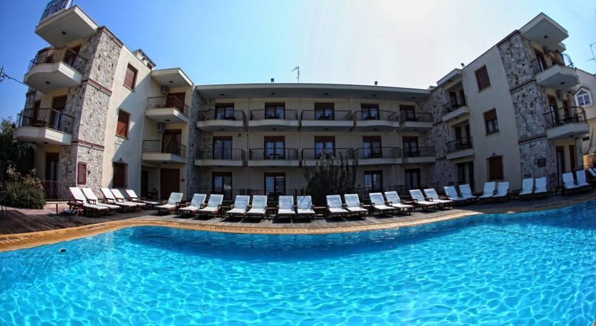Adatta agli sport acquatici, la zona è caratterizzata dal verde delle montagne e dall'azzurro delle limpide acque del Golfo di Toroneos, e dalla struttura potrete raggiungere con facilità numerosi negozi e moltissimi locali notturni.