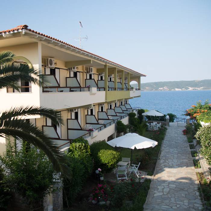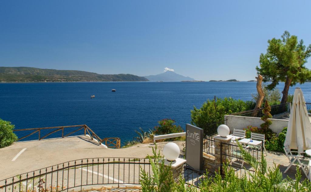 Situato sulla spiaggia dell'Isola di Amouliani, di fronte alla Penisola Calcidica, il Sunrise Hotel offre una colazione a buffet e camere climatizzate con balcone affacciato sul Golfo di Agion Oros o sui giardini.