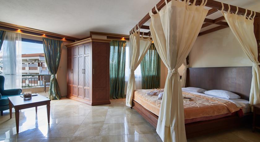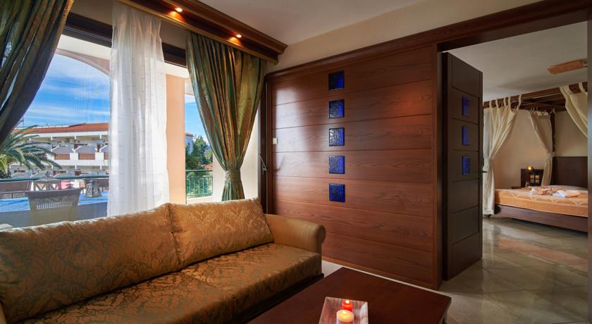 La colazione a buffet viene servita presso il ristorante principale. Stergios Tavern serve pesce fresco e ogni settimana serate di musica greca. Potrete sorseggiare un drink presso il bar a bordo piscina con vista sul mare. Le strutture benessere includono un centro fitness, sauna e vasca idromassaggio. C'è anche un parco giochi per i più piccoli.