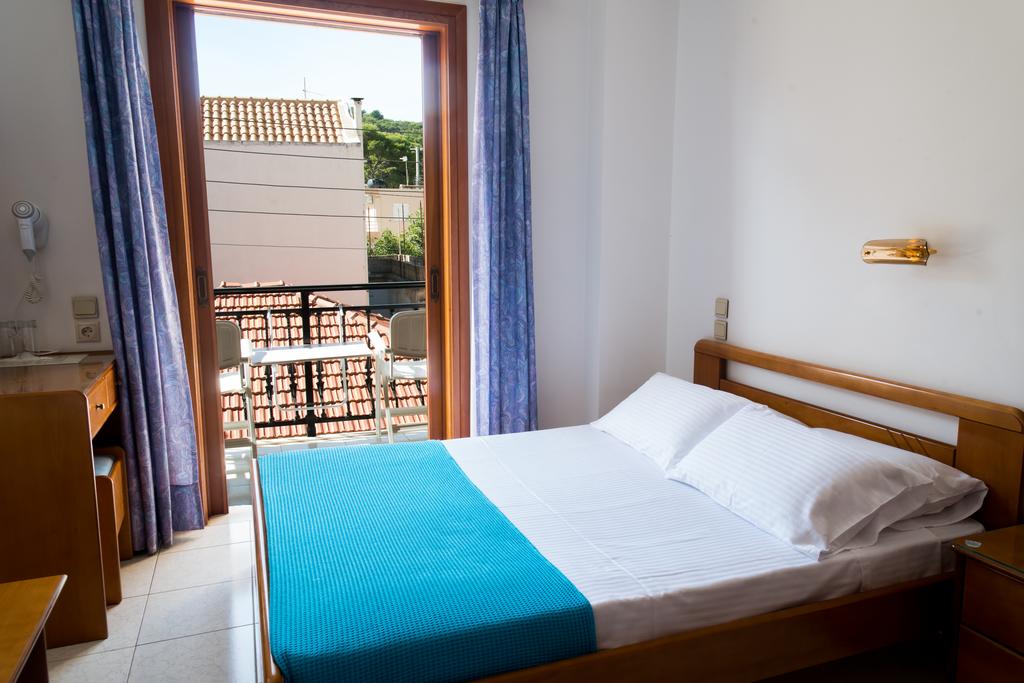 Arredate in uno stile sobrio, le stanze dell'Aggelos si aprono su un balcone, e includono l'aria condizionata, una TV, un frigorifero e un bagno privato con doccia.