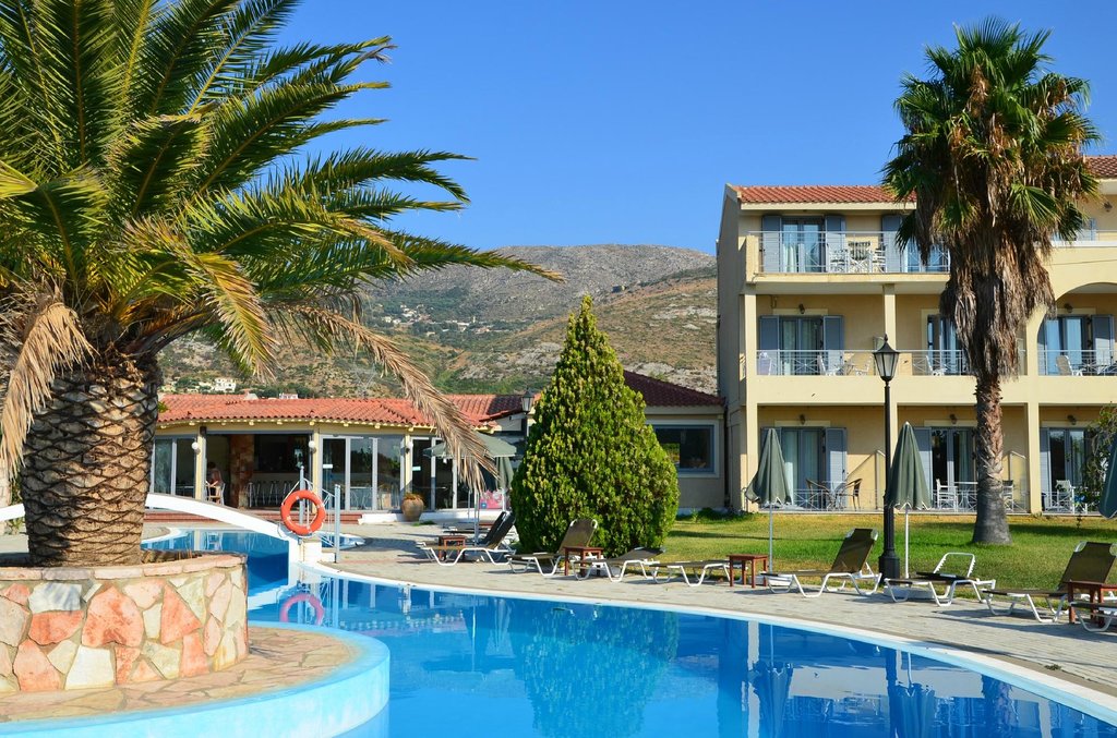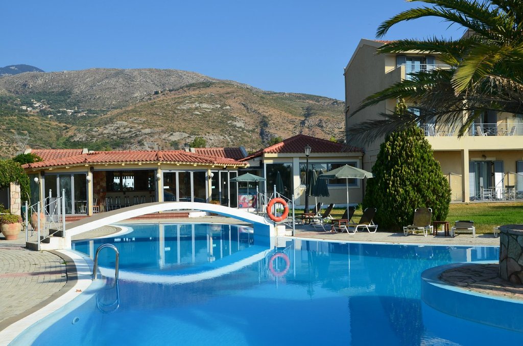 Immerso in un giardino di 3.000 m² rallegrato da una grande piscina, un bar a bordo piscina e un barbecue, l'hotel sorge nel borgo marinaro di Katelios, a soli 5 minuti a piedi dalla spiaggia.