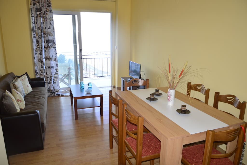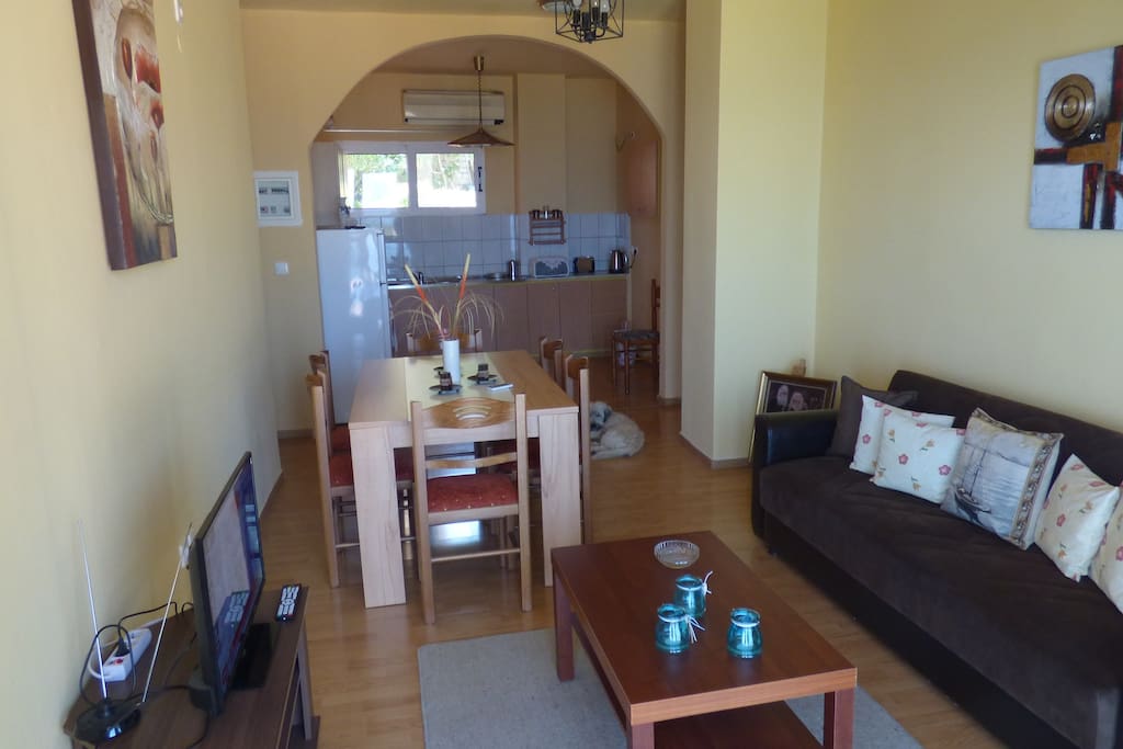 L' appartamento con vista sul mare si trova appena sopra il cuore del villaggio di Poros sulla costa meridionale di Cefalonia. Questa vacanza sicuramente sarà memorabile soprattutto per chi cerca un ambiente tranquillo e silenzioso. Splendido appartamento spazioso con 3 camere da letto (tutte con vista sul mare e balconi), 1 bagno e con ampio soggiorno, cucina completamente attrezzata.