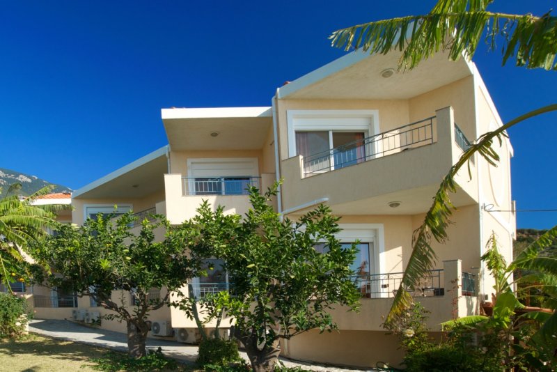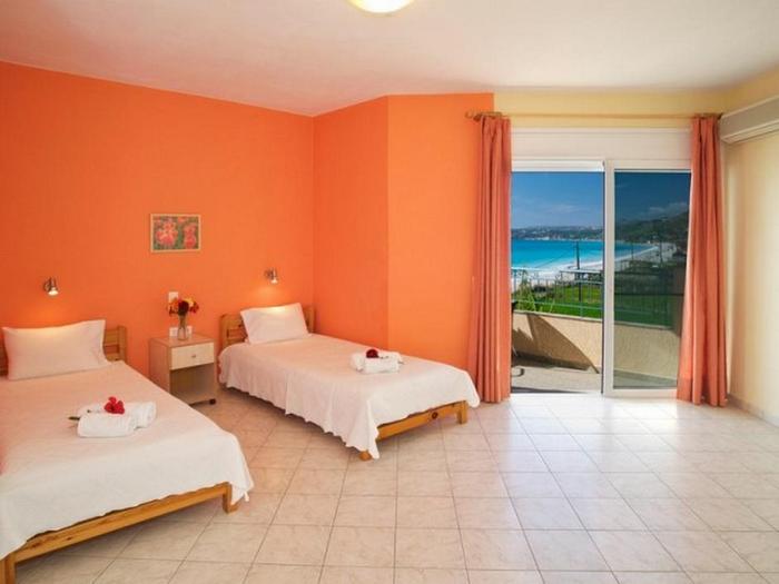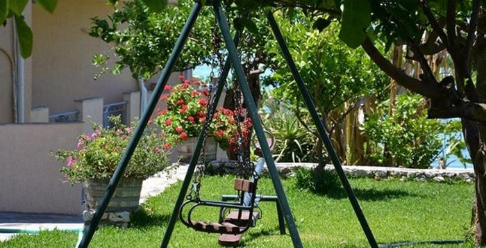Immerso in un giardino in fiore, a 3 minuti a piedi dalla spiaggia di Lygia, la struttura offre una piscina, uno snack bar con connessione Wi-Fi gratuita e balcone o veranda affacciati sul Mar Ionio, sulle montagne o sul giardino.