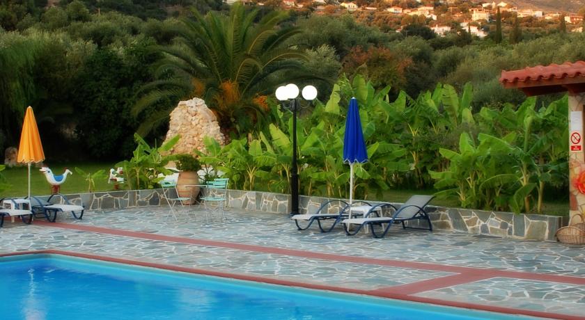 Ubicato a 600 metri dalla spiaggia di Trapezaki, sull'isola di Cefalonia, il Jovanna Studios dispone di un giardino con palme, fontana e parco giochi per bambini, di una piscina con terrazza solarium e di alloggi con angolo cottura con balcone affacciato sul giardino, sulla piscina o sul Mar Ionio.