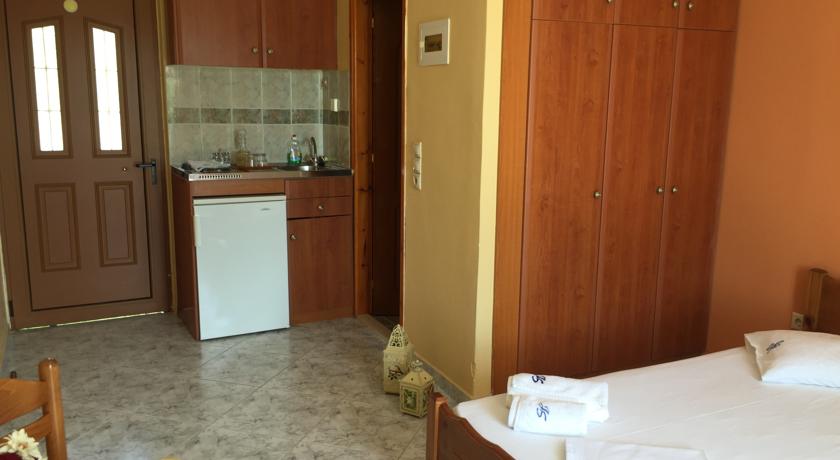 Provvisti di arredi semplici in legno con tonalità color terra e di connessione Wi-Fi gratuita, i monolocali climatizzati del Jovanna dispongono di un angolo cottura con frigorifero e bollitore elettrico e di un bagno privato con asciugacapelli.