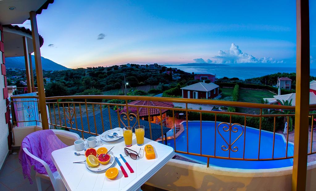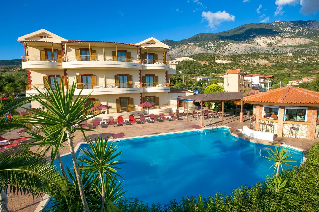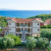 Il Residence circondato dalla quiete di Trapezaki, vanta splendide viste sul mare e offre una grande piscina all'aperto, un bar e il parcheggio privato gratuito.
