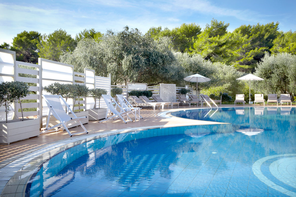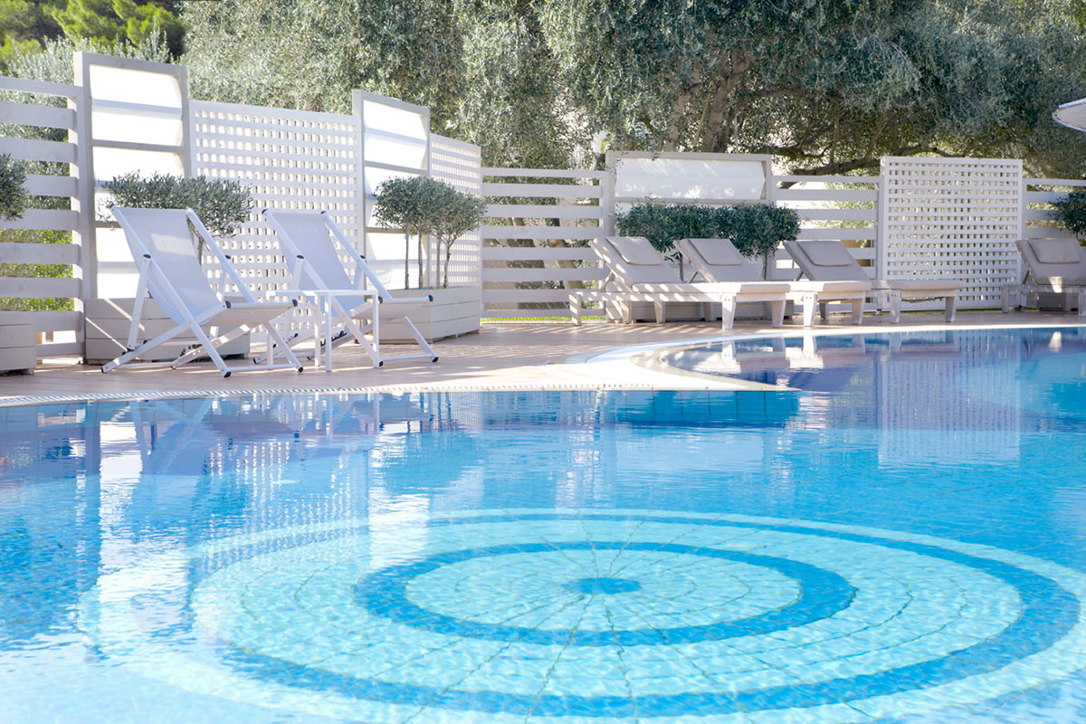 La piscina del Thalassa è immersa in un rigoglioso giardino e contornata da una terrazza solarium con ombrelloni e comodi lettini prendisole; i più attivi potranno inoltre usufruire di una sala fitness completamente attrezzata.