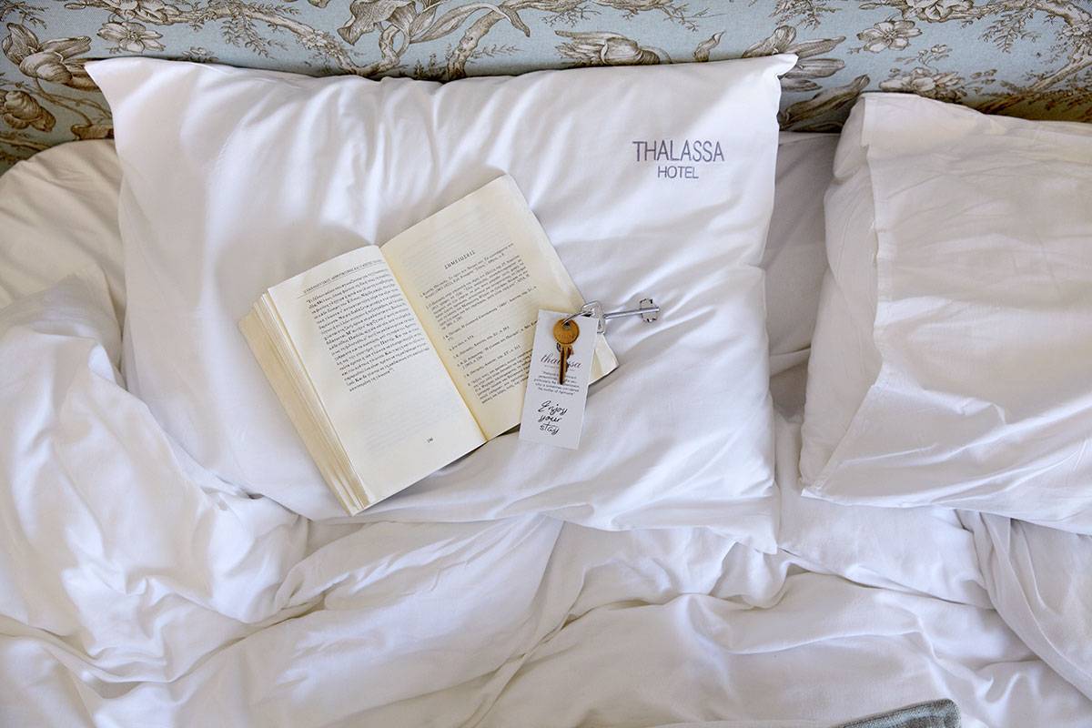 Le camere dell'Hotel Thalassa sono arredate con eleganza e dispongono tutte di TV con canali satellitari, aria condizionata, asciugacapelli, cassaforte, bagno in marmo e set per la preparazione di tè e caffè.